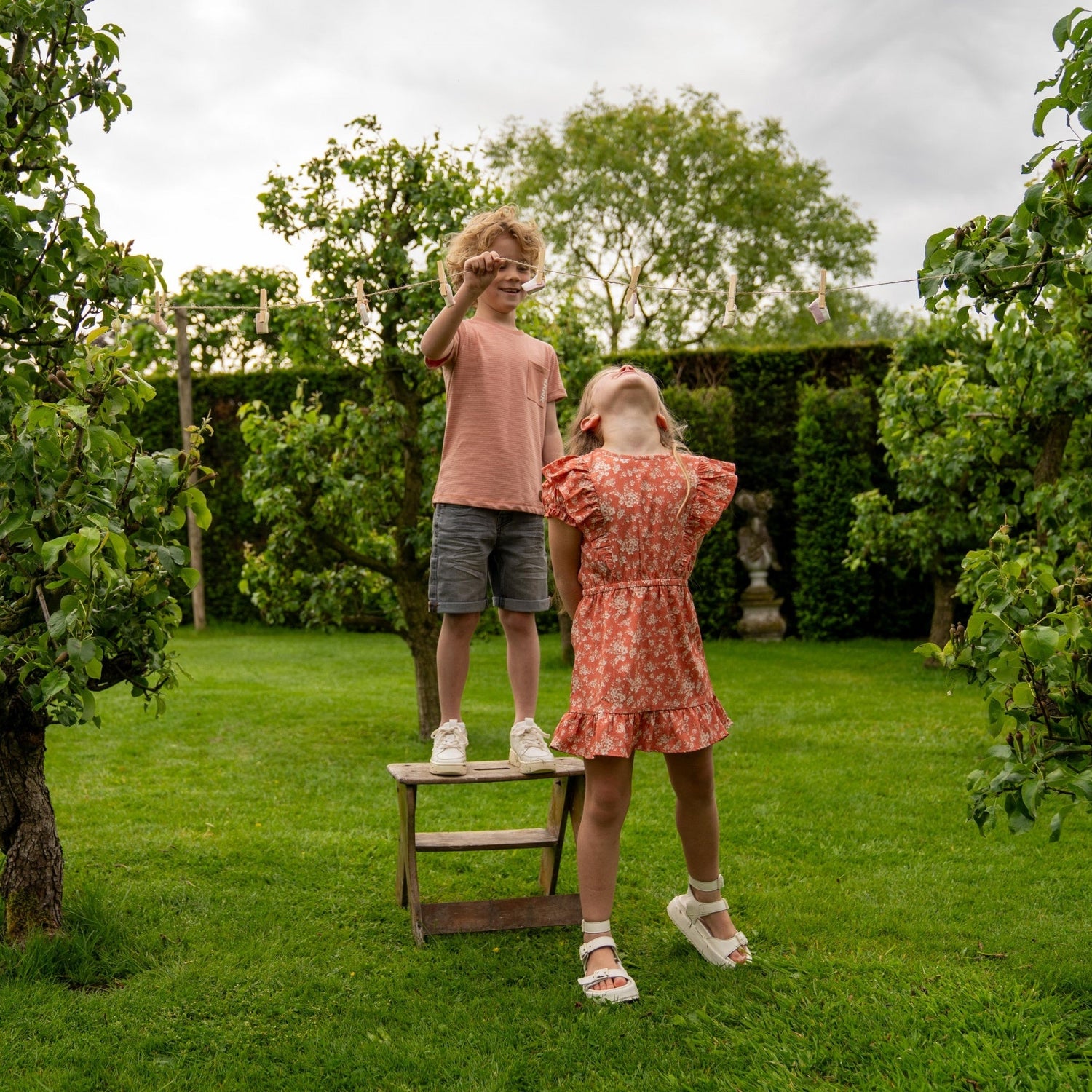 فستان مثالي يمنحك إحساساً صيفياً فورياً! فستان كوكو نوكو يأتي بلون برتقالي ناعم مزين بنقشة زهور لطيفة. يتميز الفستان بأكمام منتفخة وكشكش جميل على الأكتاف. الجزء السفلي من الفستان يتسع قليلاً ويزينه شريط من الكشكش.