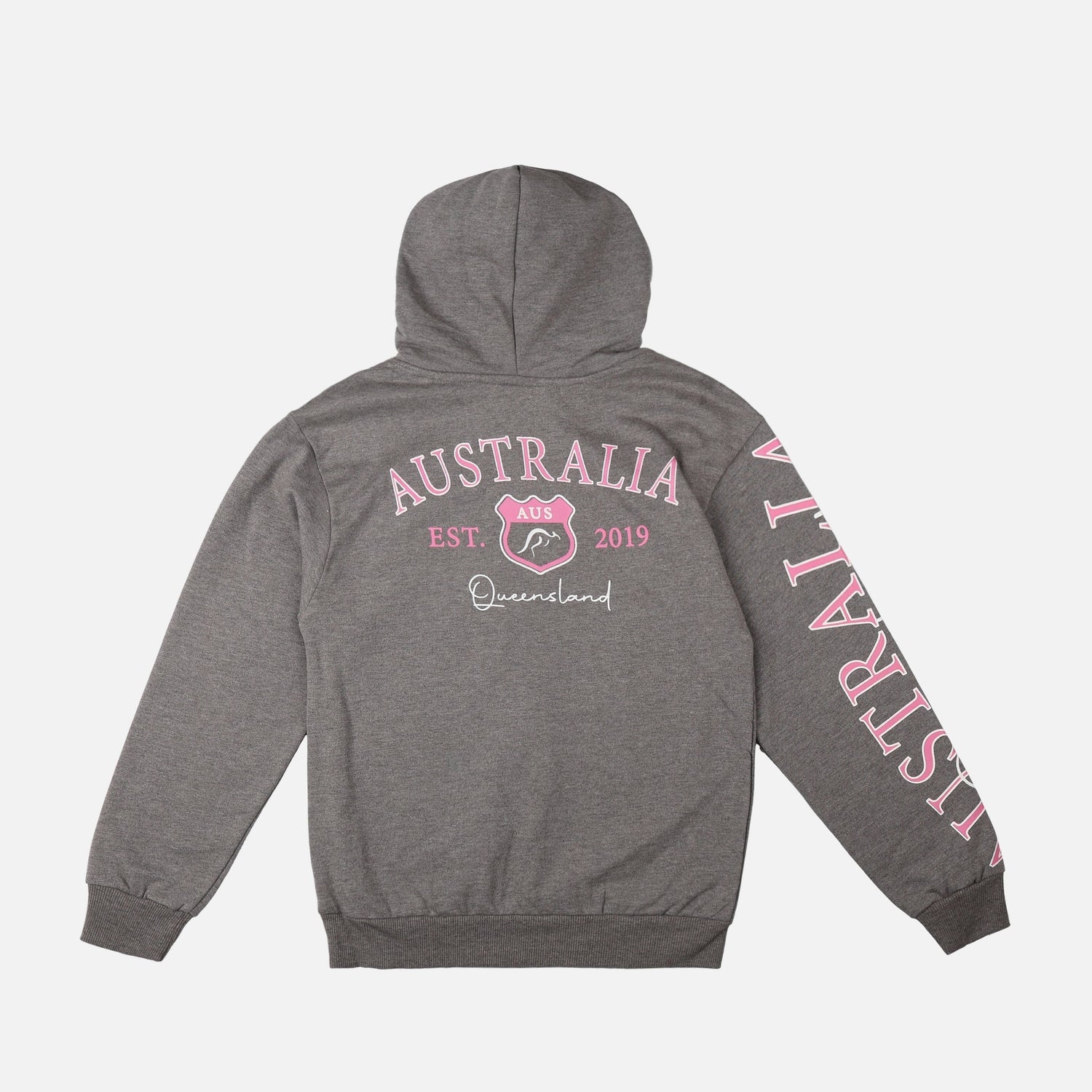• تصميم رمادي كلاسيكي مع شعار وردي يضيف لمسة رياضية مرحة.