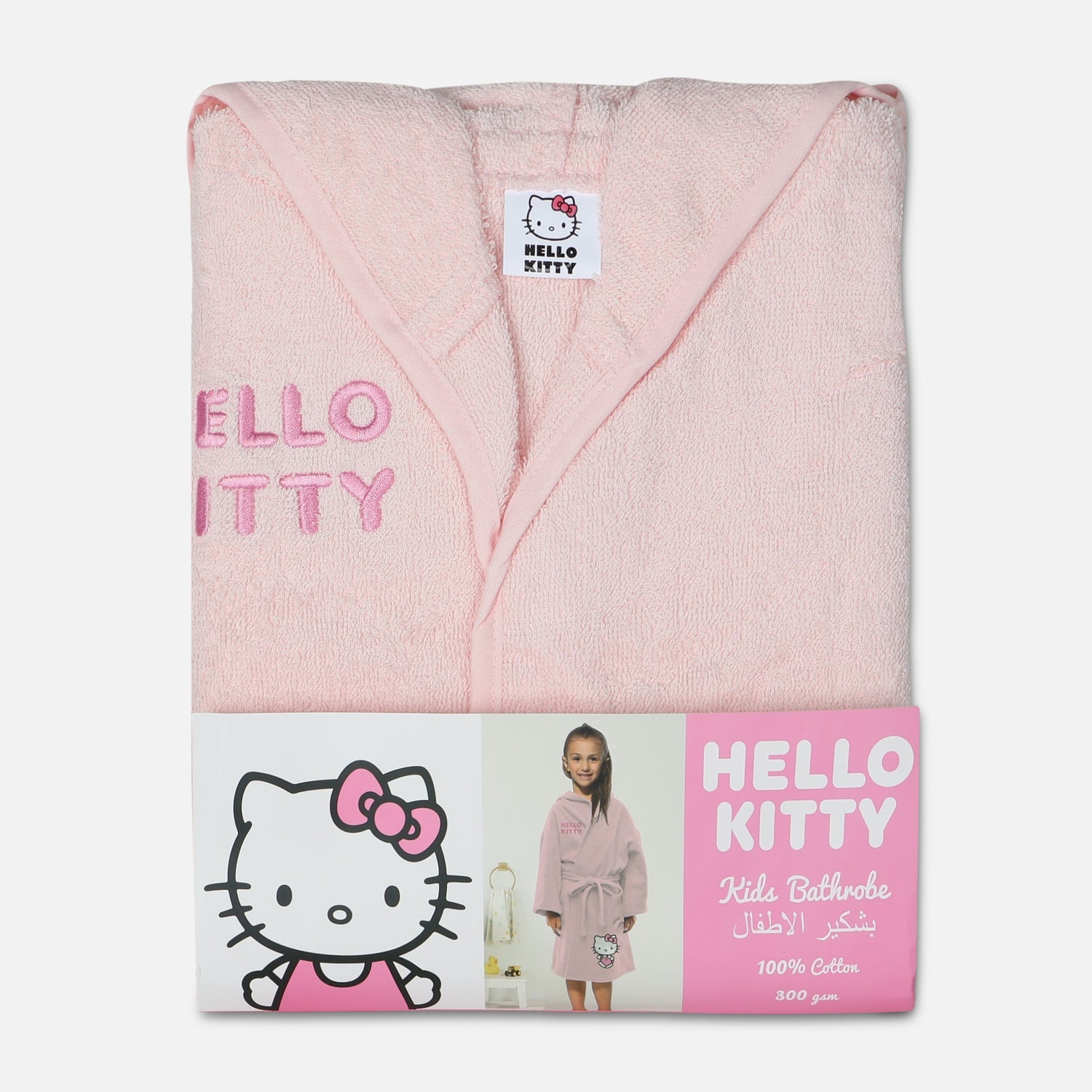 المقدمة روب الحمام Hello Kitty مريح مصنوع من 100% قطن، مخصص لعشاق الشخصية الشهيرة Hello Kitty، ويوفر دفئاً ونعومة مميزة بعد الاستحمام.