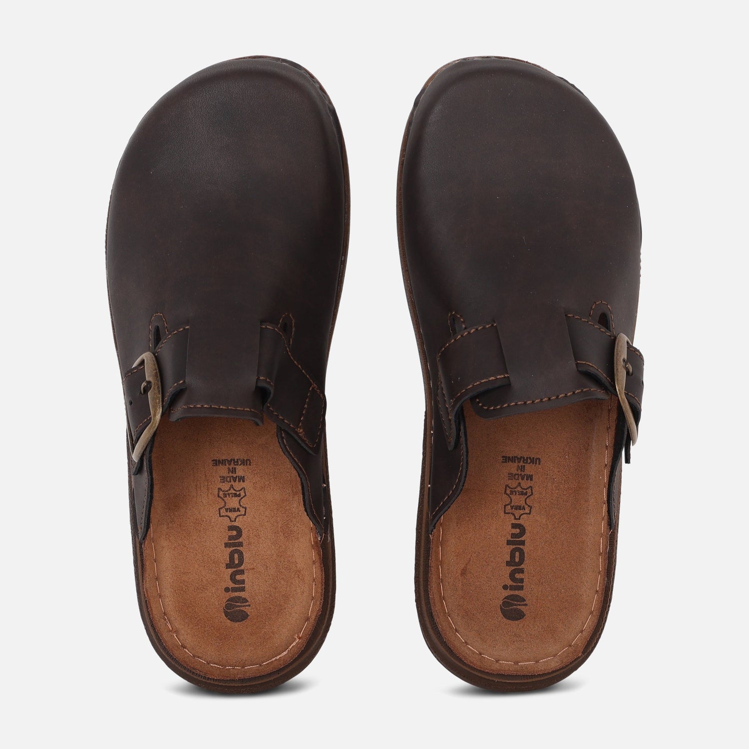 These men's casual slip-on mules combine easygoing comfort with a classic brown finish — ideal for everyday wear, errands, or relaxed weekends. The closed-toe mule features a single adjustable buckle for a secure, customizable fit.