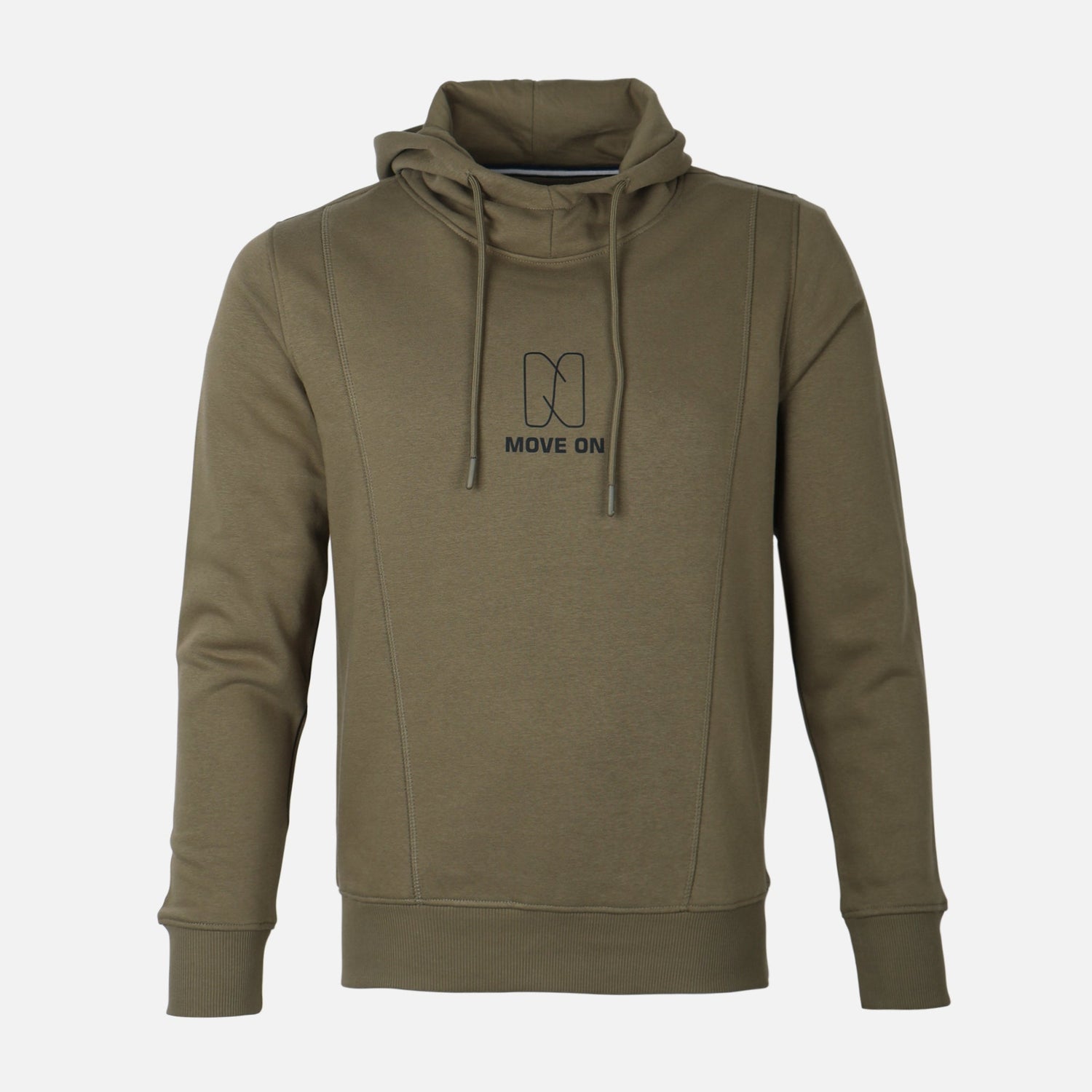 الخصائص والتصميم – يجمع هذا الهودي بين بساطة المظهر وتفاصيل عملية: غطاء رأس مبطن وحبال ضبط، وخياطة معززة على ألواح الصدر لتحمّل الاستخدام المتكرر، وحواف مضلعة تمنح مظهرًا مرتبًا. التصميم المحفوظ مع شعار "MOVE ON" الصغير يمنحه طابع حياة عصرية متعدد الاستخدامات.