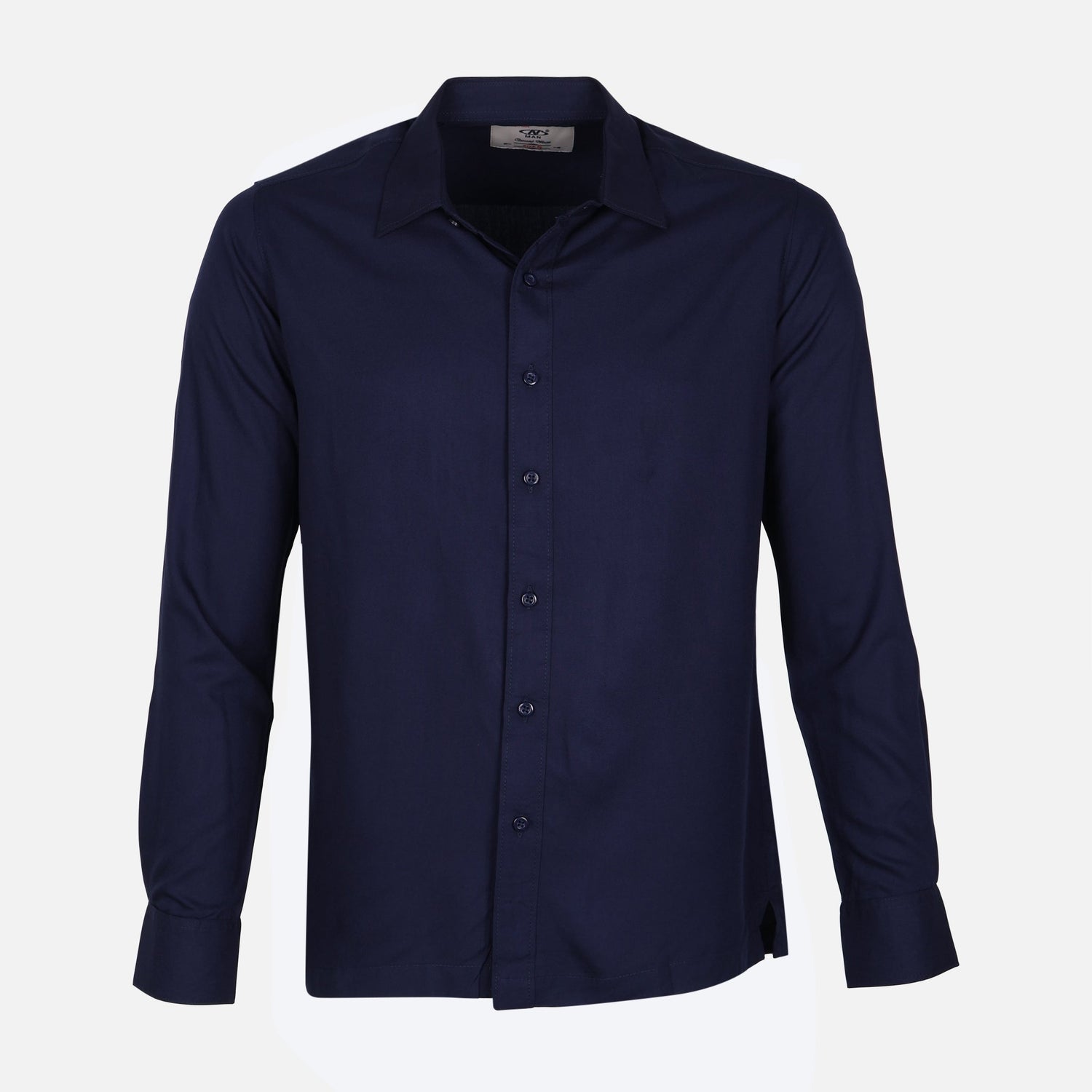 قميص رجالي سادة بأكمام طويلة - NAVY BLUE / M