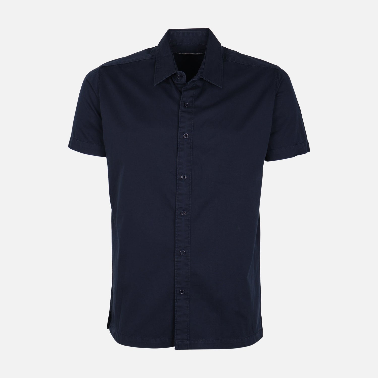 قميص رجالي سادة بأكمام قصيرة - NAVY BLUE / S