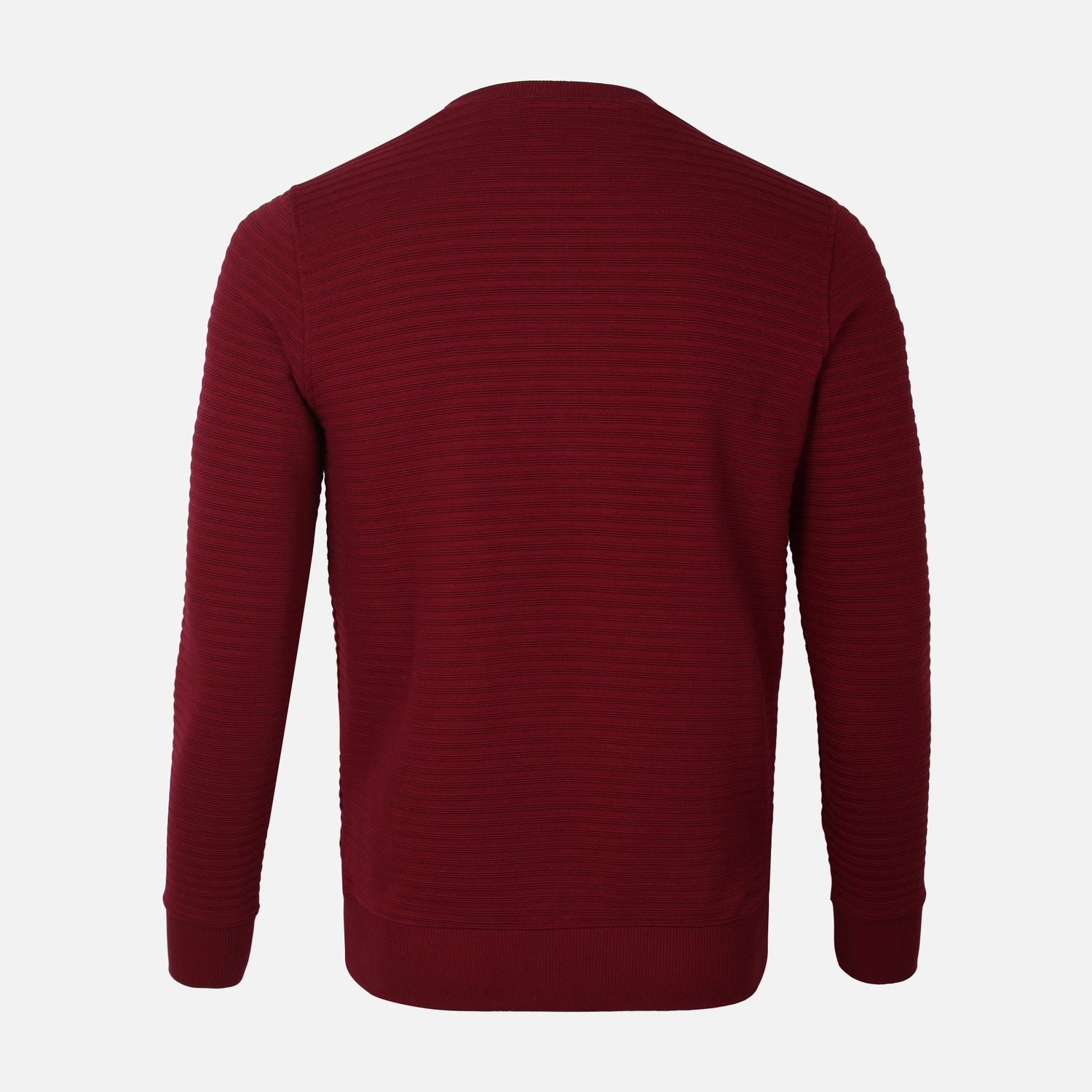 النقش/النمط: نسيج مضلع أفقي دقيق عبر الجسم والأكمام يضيف عمقاً بصرياً رقيقاً.