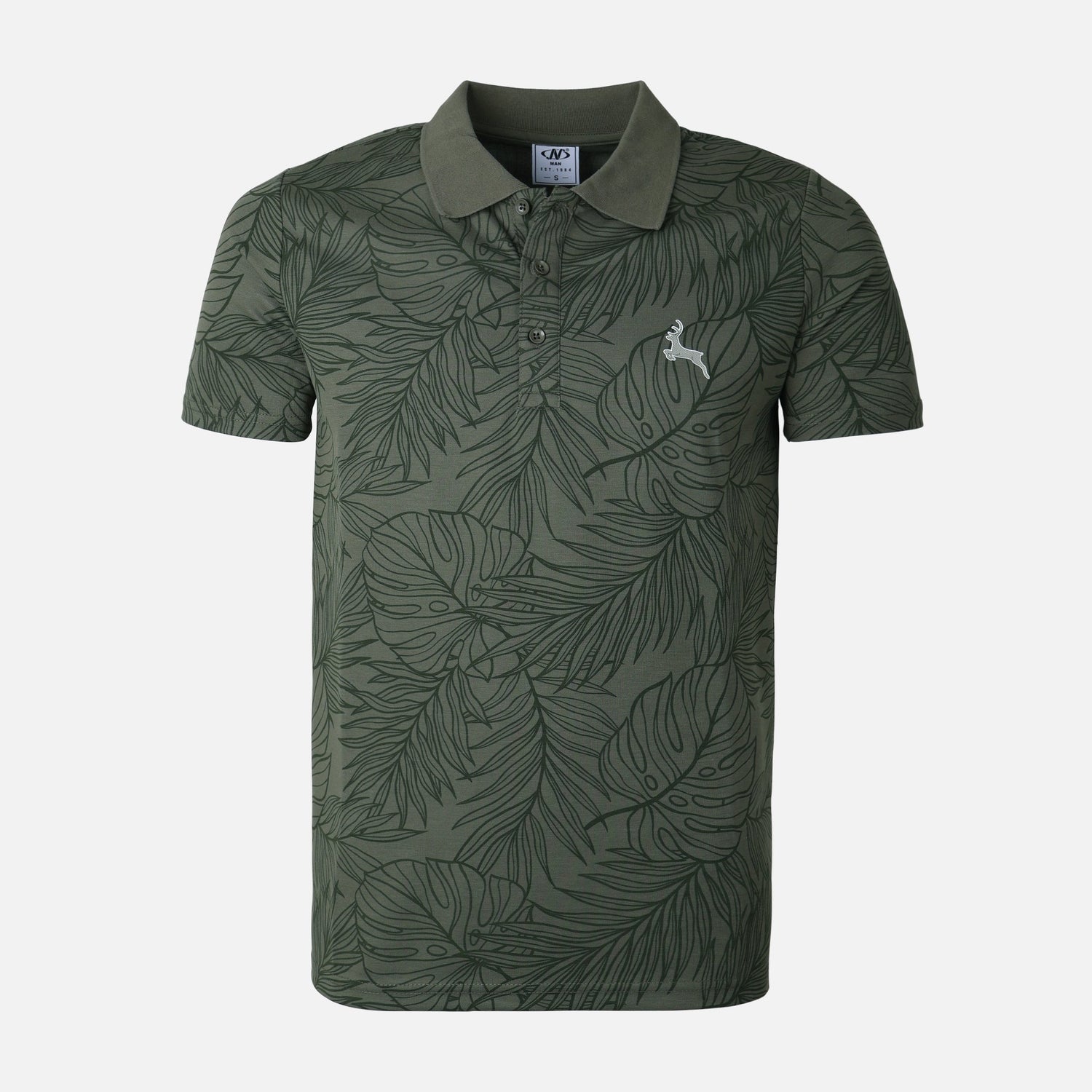 This men's polo shirt blends tropical-inspired style with everyday comfort, offering a lightweight polyester polo perfect for spring and summer wear.
