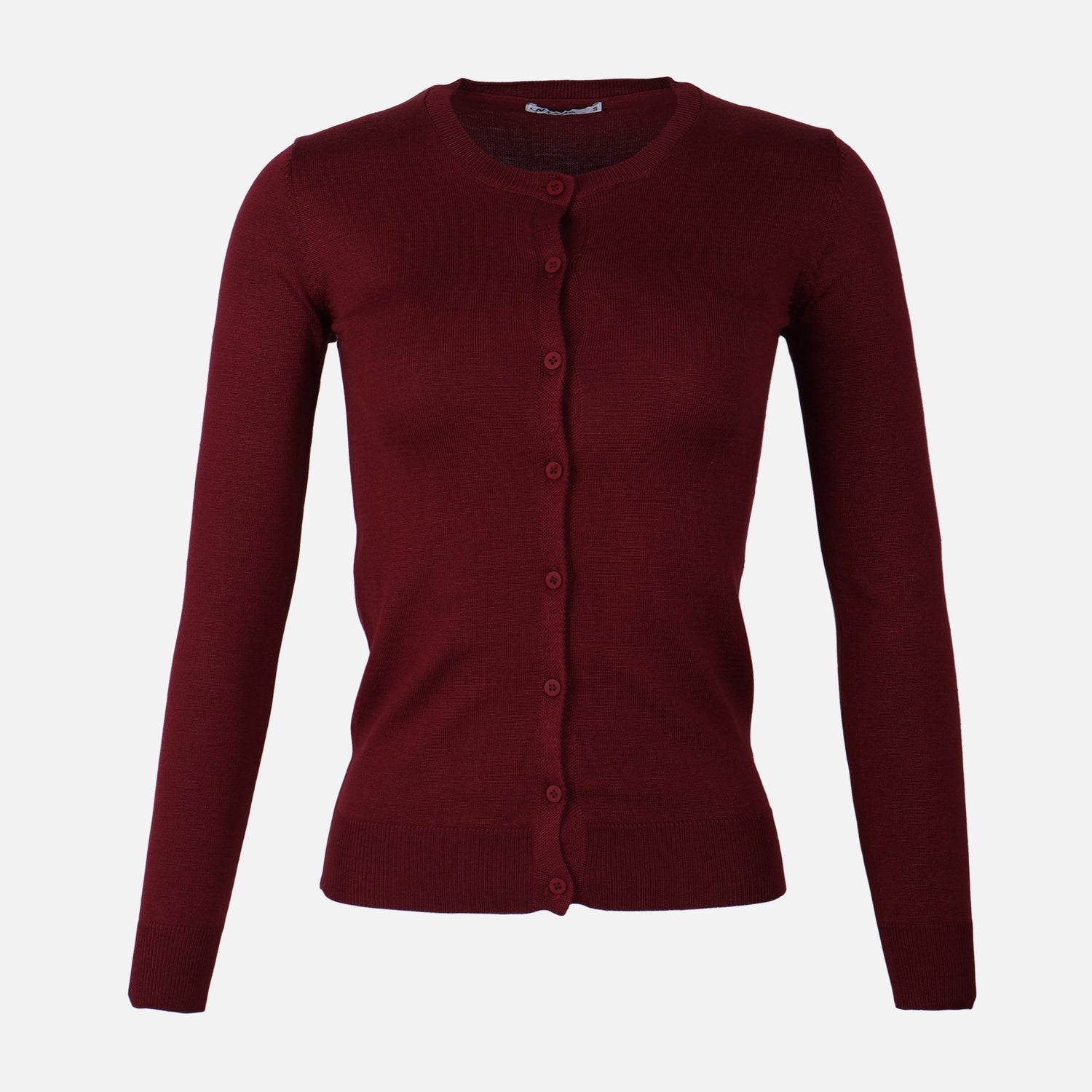 كارديجان نسائي بياقة مستديرة - MAROON / S
