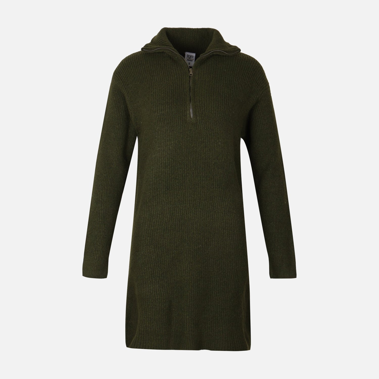فستان نسائي محبوك بياقة عالية - OLIVE / S