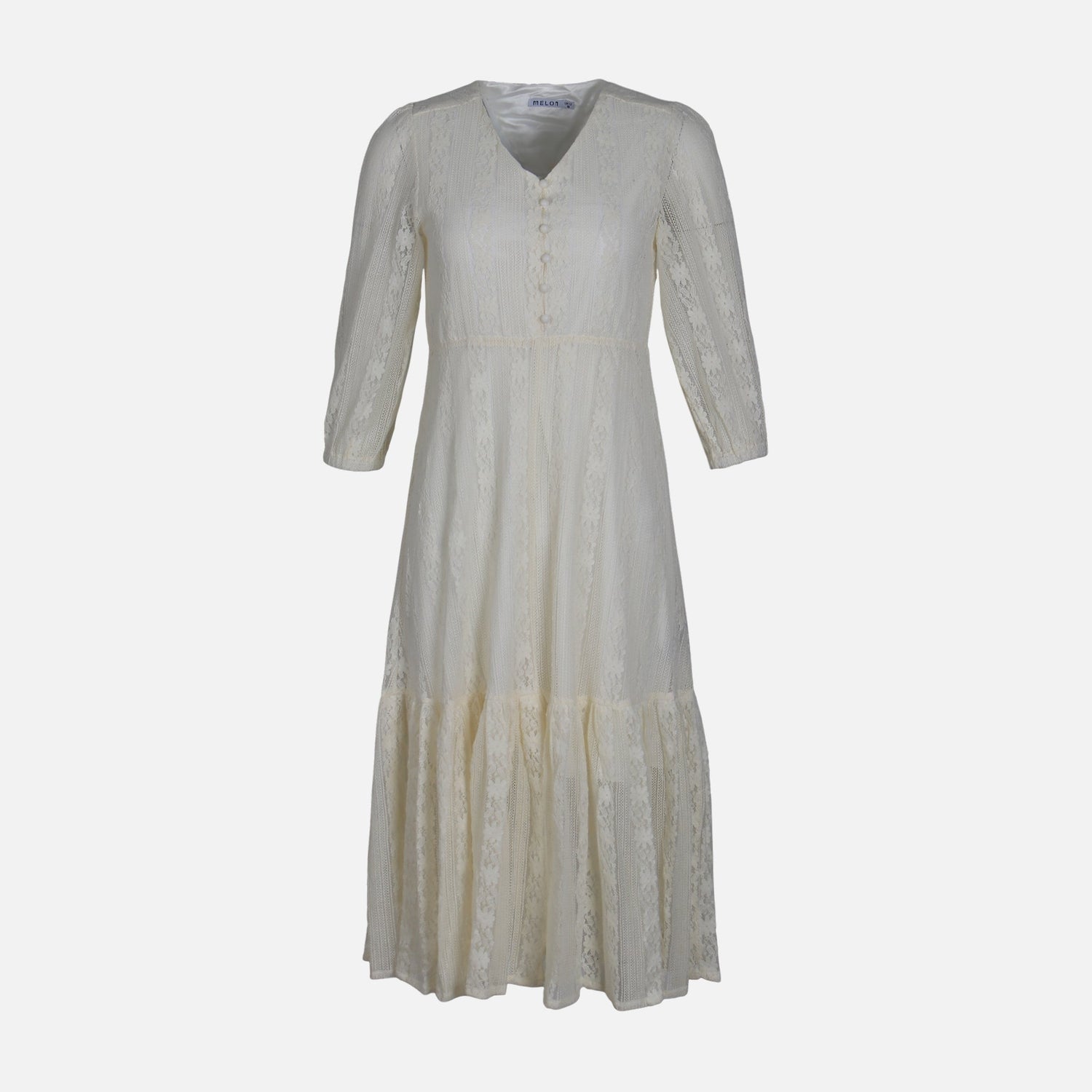 فستان طويل بأكمام قصيرة نسائي - أبيض / S