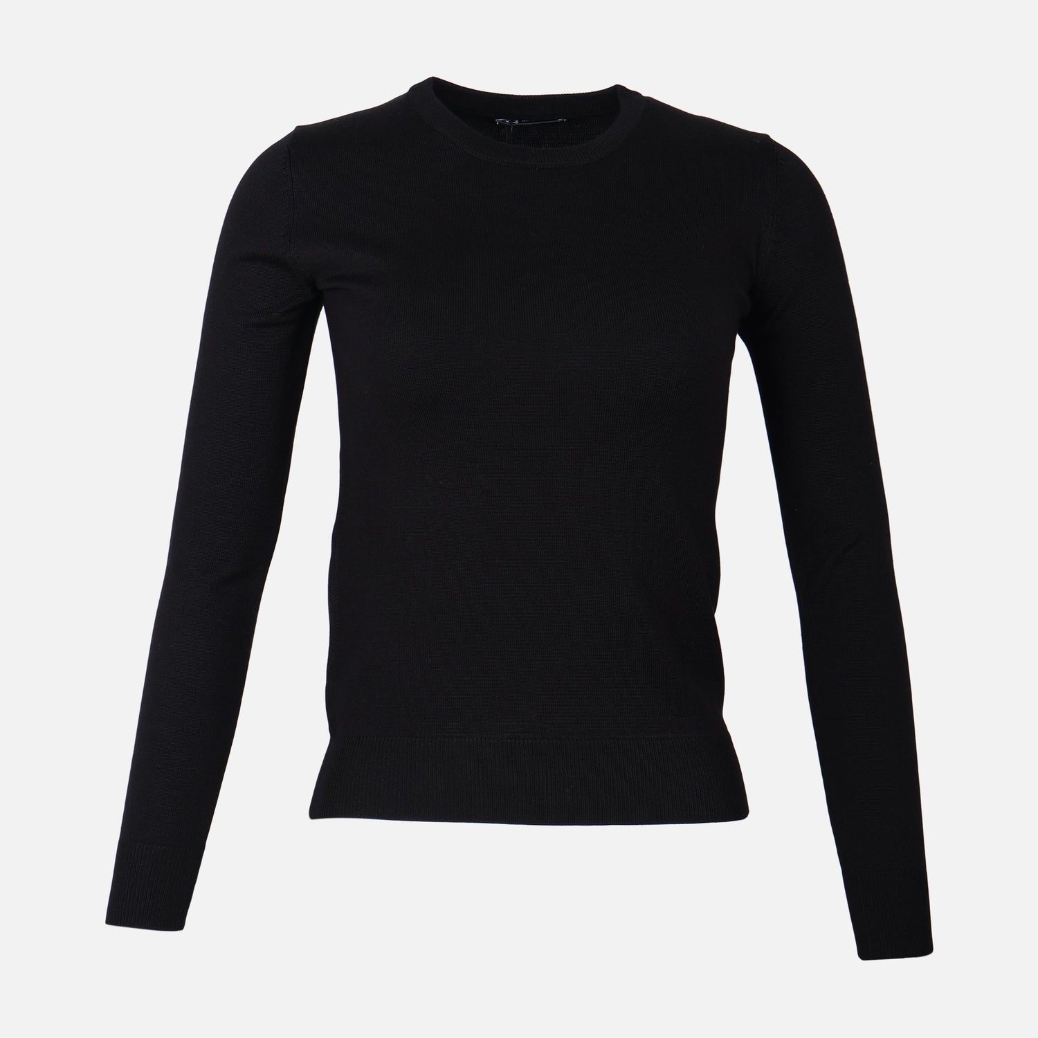 سويتر نسائي بياقة مستديرة - BLACK / S