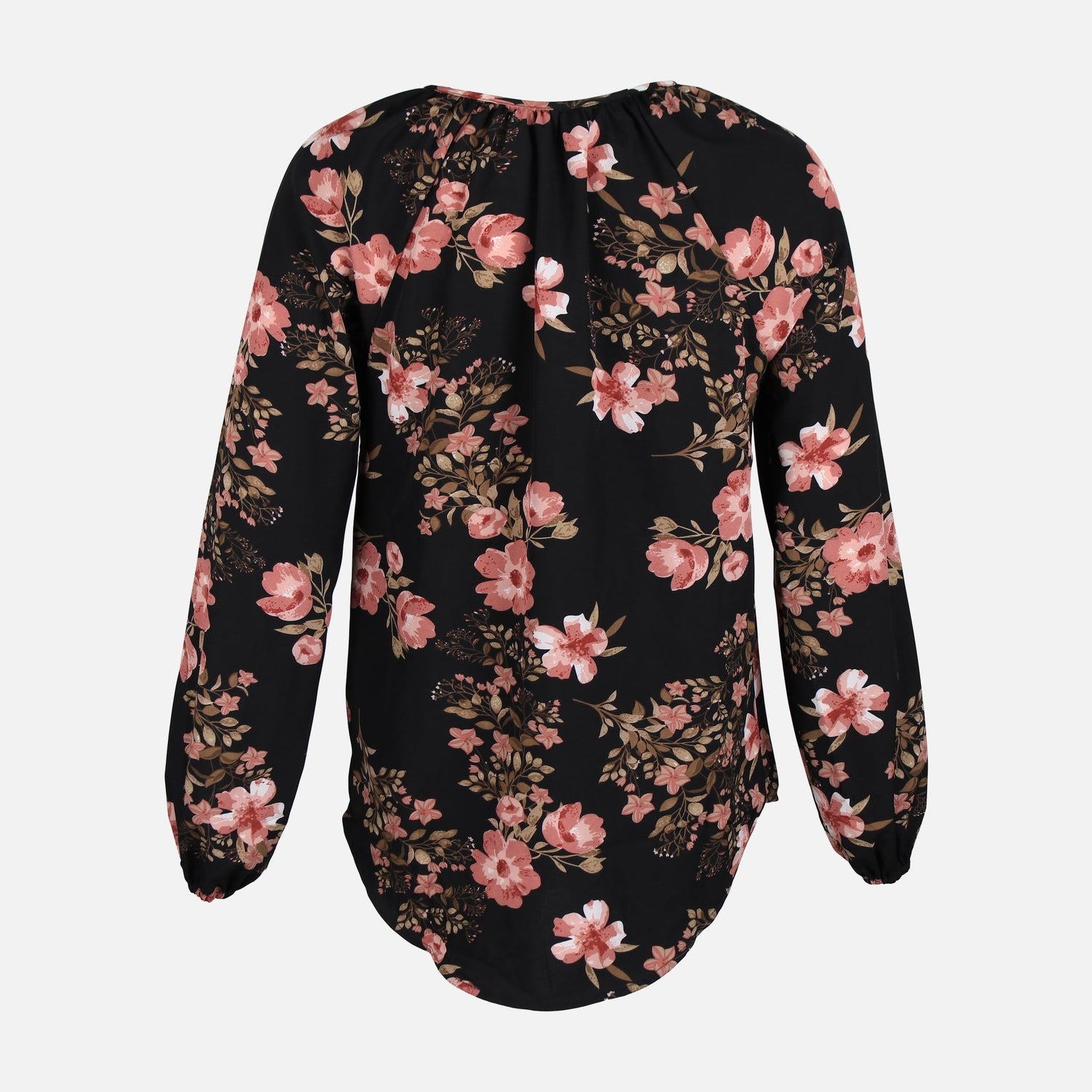 توب نسائي منسوج بنقشة زهور بأكمام طويلة - FLORALLY / S