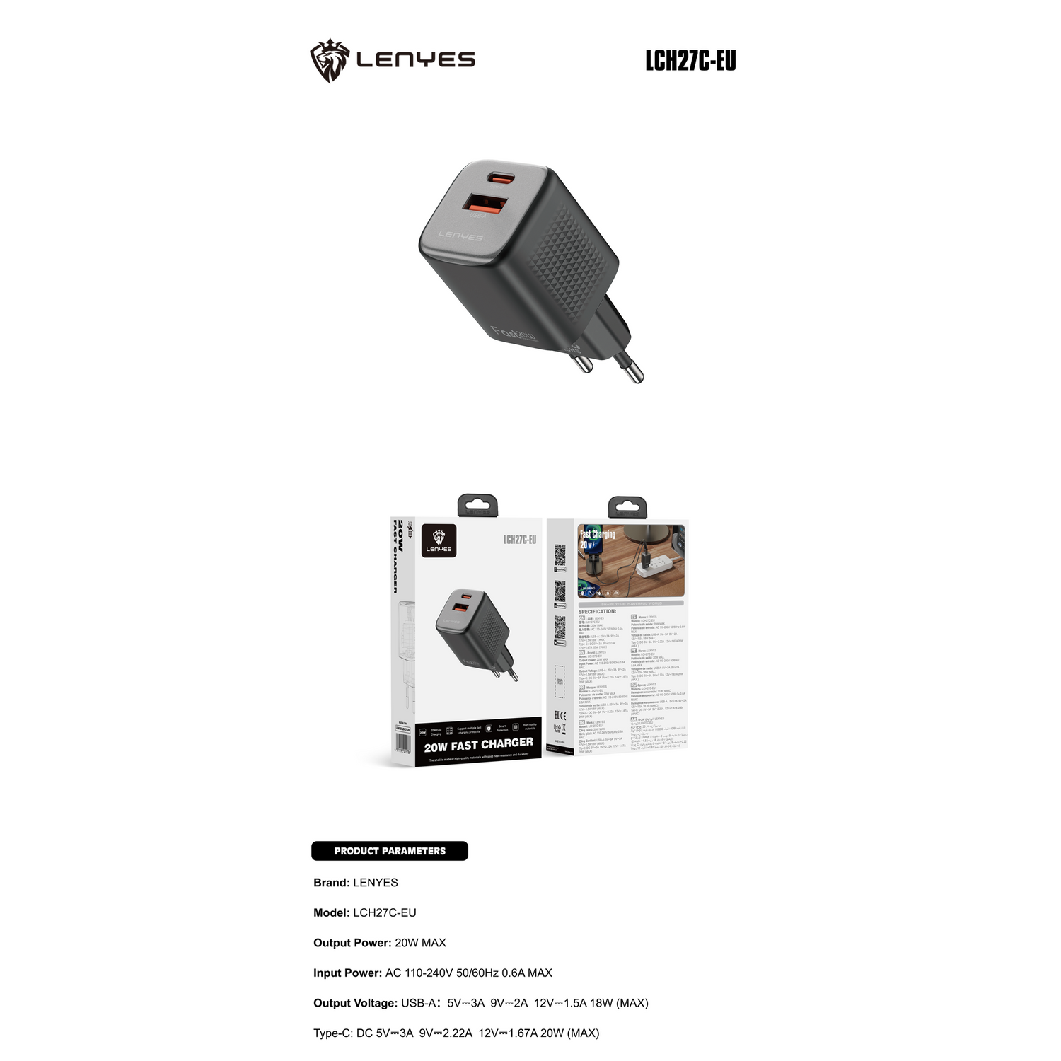 • منفذ USB-A: تيار مباشر 5V/3A، 9V/2A، 12V/1.5A