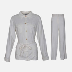 الوصف: أضف لمسة عصرية إلى خزانة ملابسك الصيفية مع طقم قطعتين نسائي من لوومينا. يتضمن هذا الطقم قميصًا وبنطلونًا مصنوعين من خليط من الكتان والقطن والسباندكس (30% كتان، 67% قطن، 3% سباندكس)، مما يوفر خيارًا خفيفًا ومساميًا ومرنًا لأيام الحرارة. يجعل التصميم الكاجول الطقم مثاليًا للارتداء اليومي، سواء كنت تقوم بالمهام اليومية أو تسترخي مع الأصدقاء. امزج وتوافق القطع لخيارات تصميم متعددة ومتنوعة.