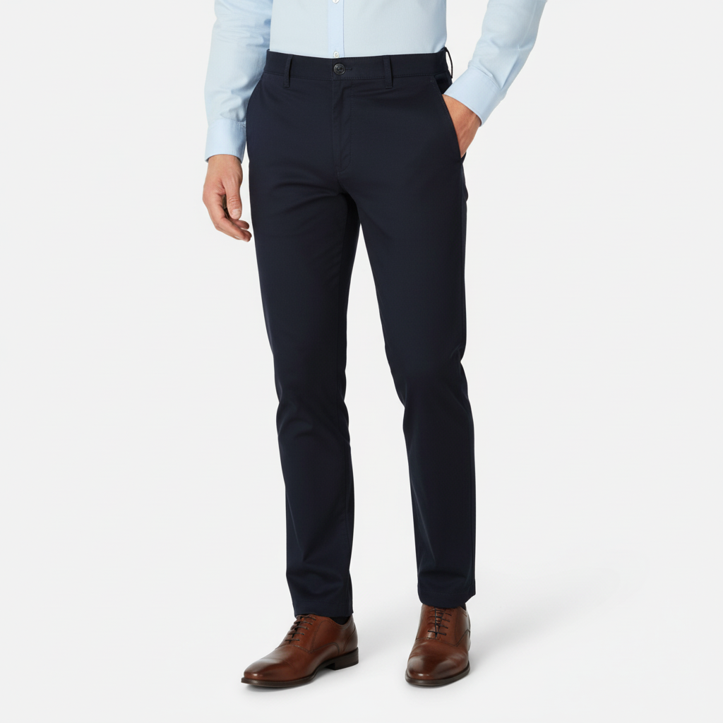 Meet Men’s Cross Pocket Chino Pants in navy—a versatile cotton pant designed for everyday wear, offering a clean, modern silhouette that transitions from casual to smart-casual with ease.