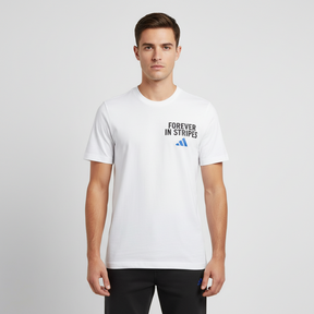 - طبعة FOREVER IN STRIPES الجريئة: طبعة أمامية مميزة مع شعار أديداس الأزرق تضيف لمسة street-ready وتعبّر عن الهوية العصرية.