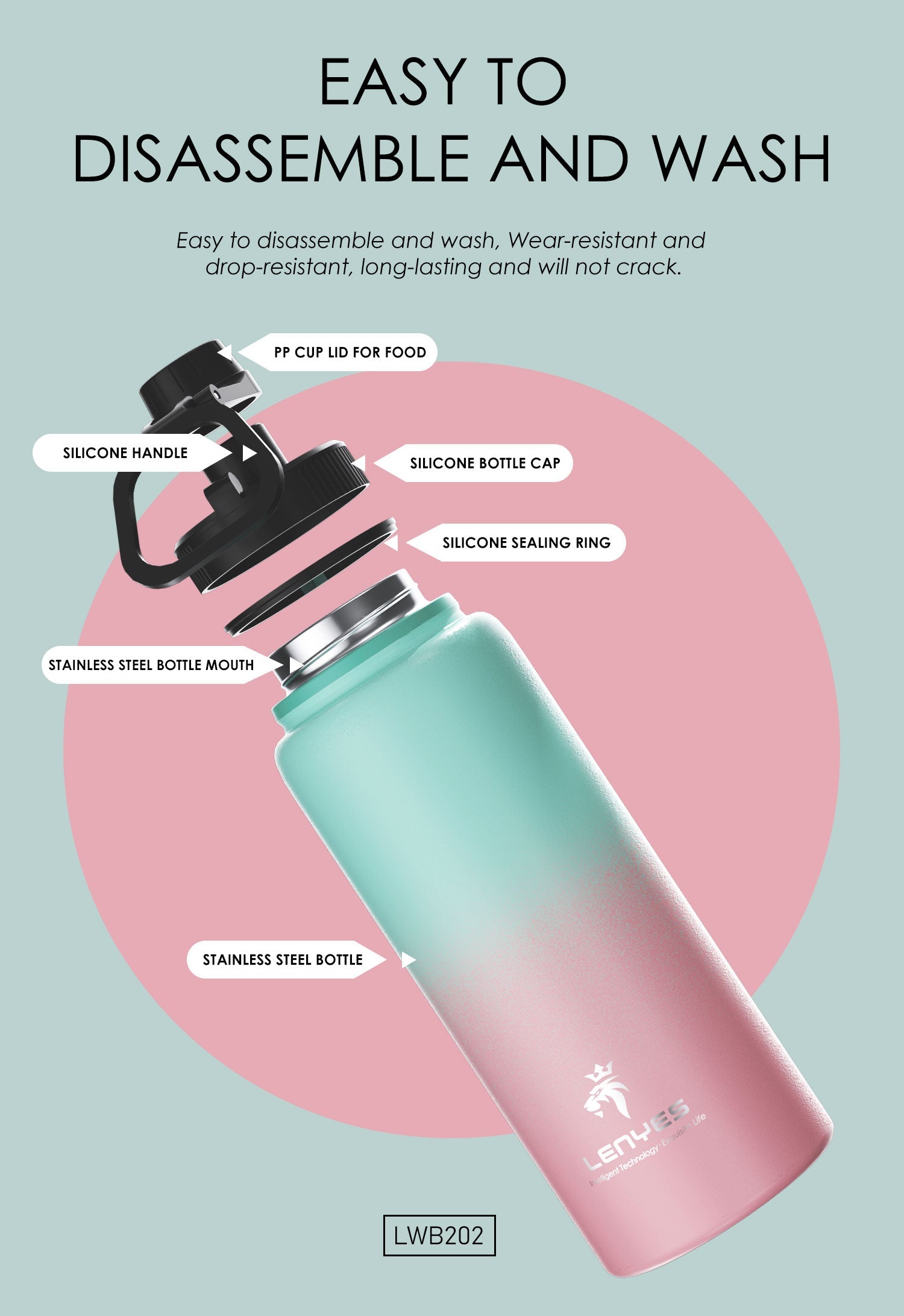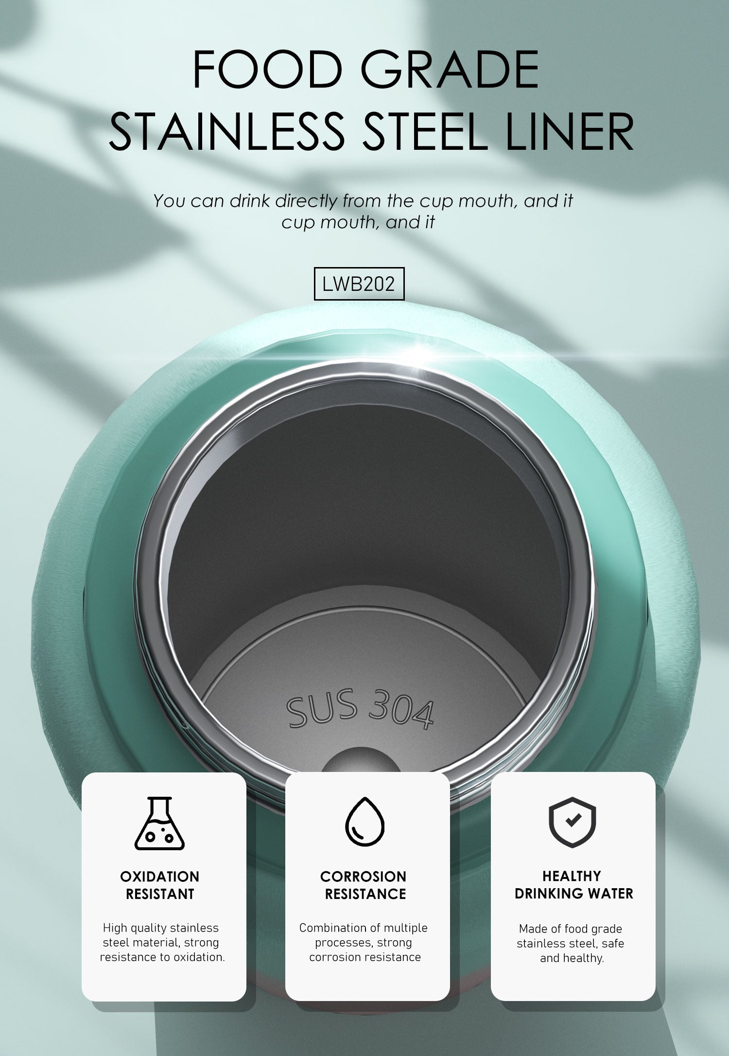 With its dual-layer stainless steel construction, the LENYES LWB202 is built to withstand daily use. The inner 304 stainless steel ensures safe contact with beverages, while the outer 201 layer adds resilience and a polished look. The result is a sturdy, long-lasting bottle that’s easy to clean and designed to travel with you wherever life takes you.