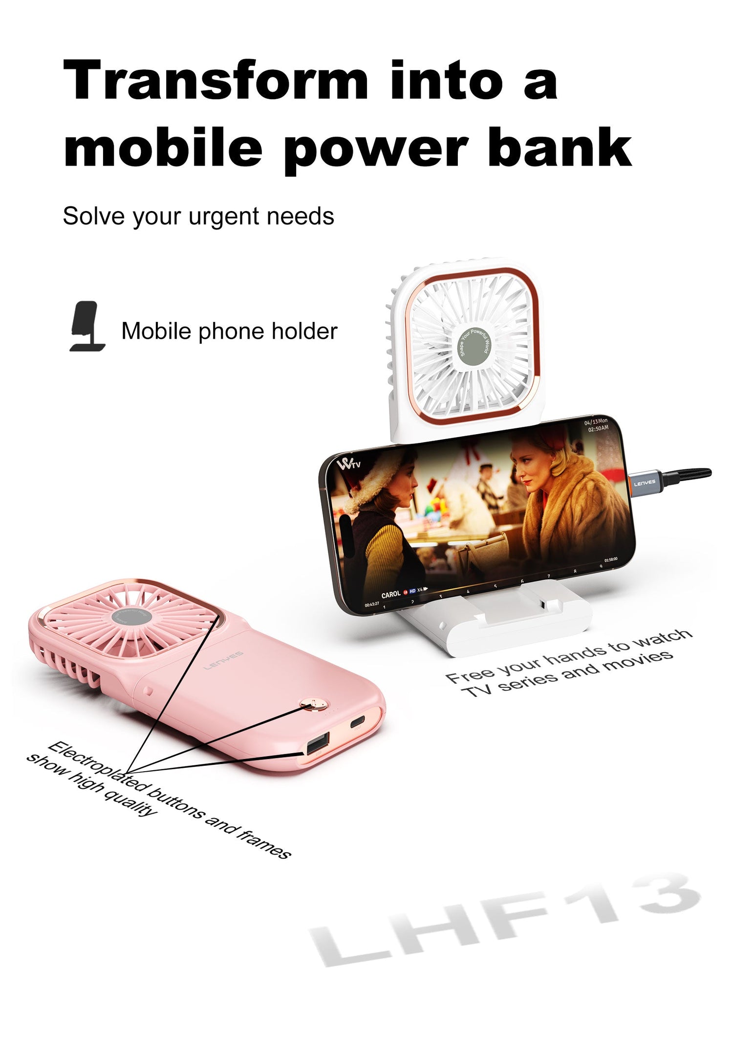 - Built-in phone holder for hands-free viewing: A practical phone holder lets you watch TV, video calls, or videos while you enjoy cooling airflow — perfect for desks, lounges, or travel lounges.