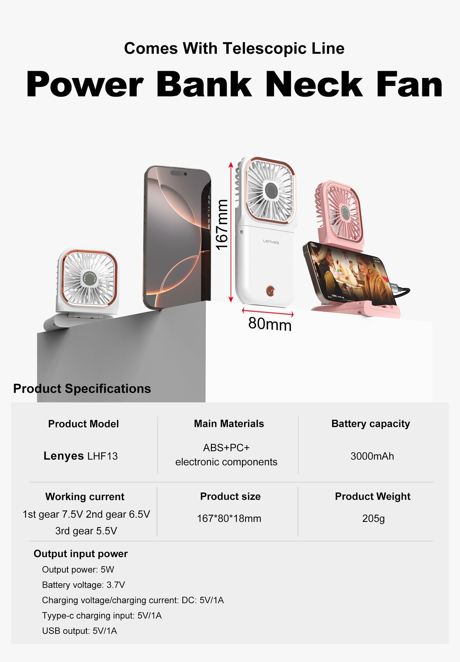 Meet the LENYES LHF13 Neck Fan — a thoughtfully engineered wearable cooling solution that keeps you refreshed without tying up your hands. Built around a compact 3000mAh battery, this portable fan delivers sustained airflow for long sessions, and it doubles as a practical power bank to top up your phone when you’re on the move. With a sleek ABS+PC frame and precision engineering, it blends everyday cooling with modern convenience.