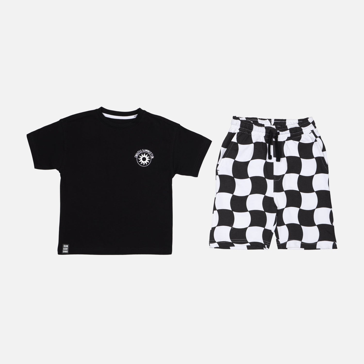 BOYS 2 PIECES SET T-SHIRT & BERMUDA - BLACK AOP / 2/3Y