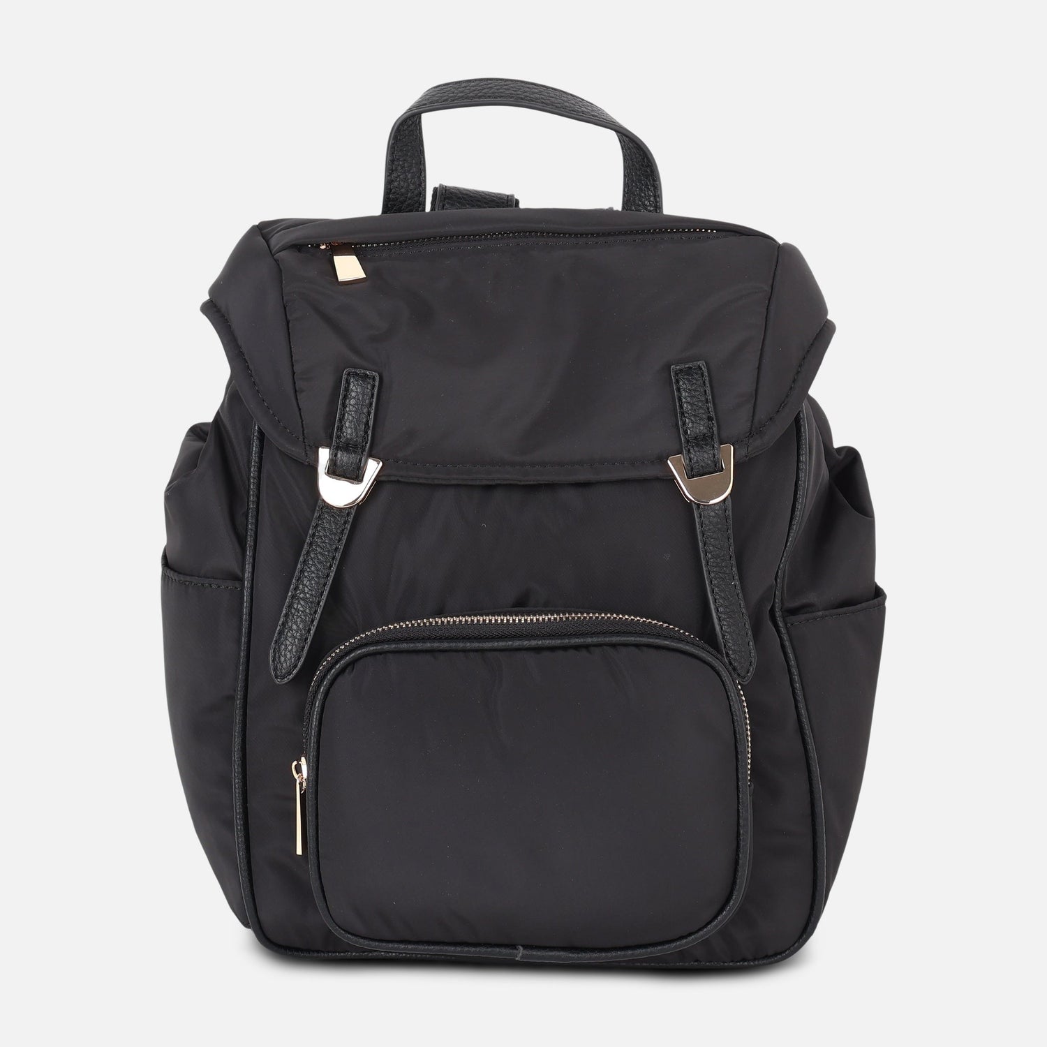 Closure Type – Flap with decorative buckle straps and a top zipper for secure access to the main compartment.