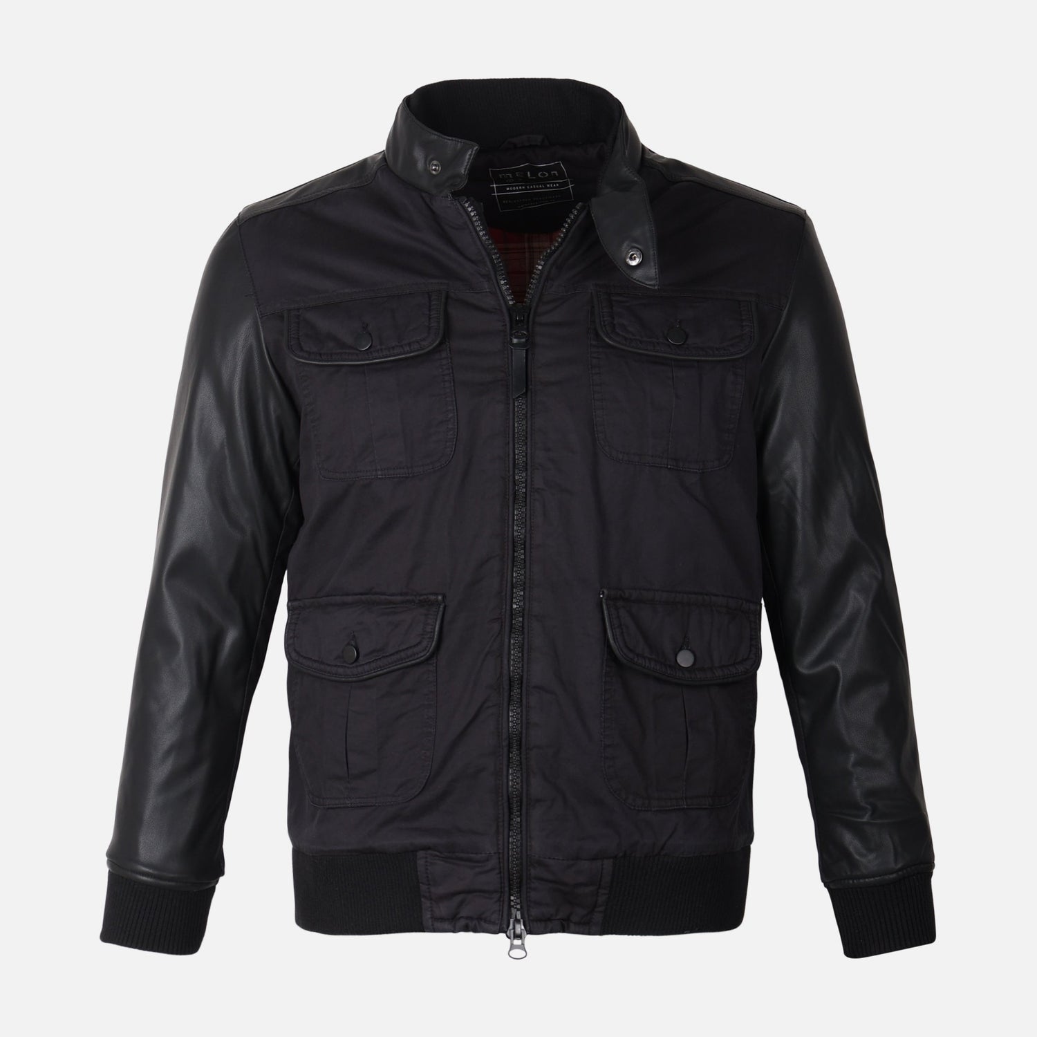 - Contrasting sleeve finish for a contemporary, mixed-material look