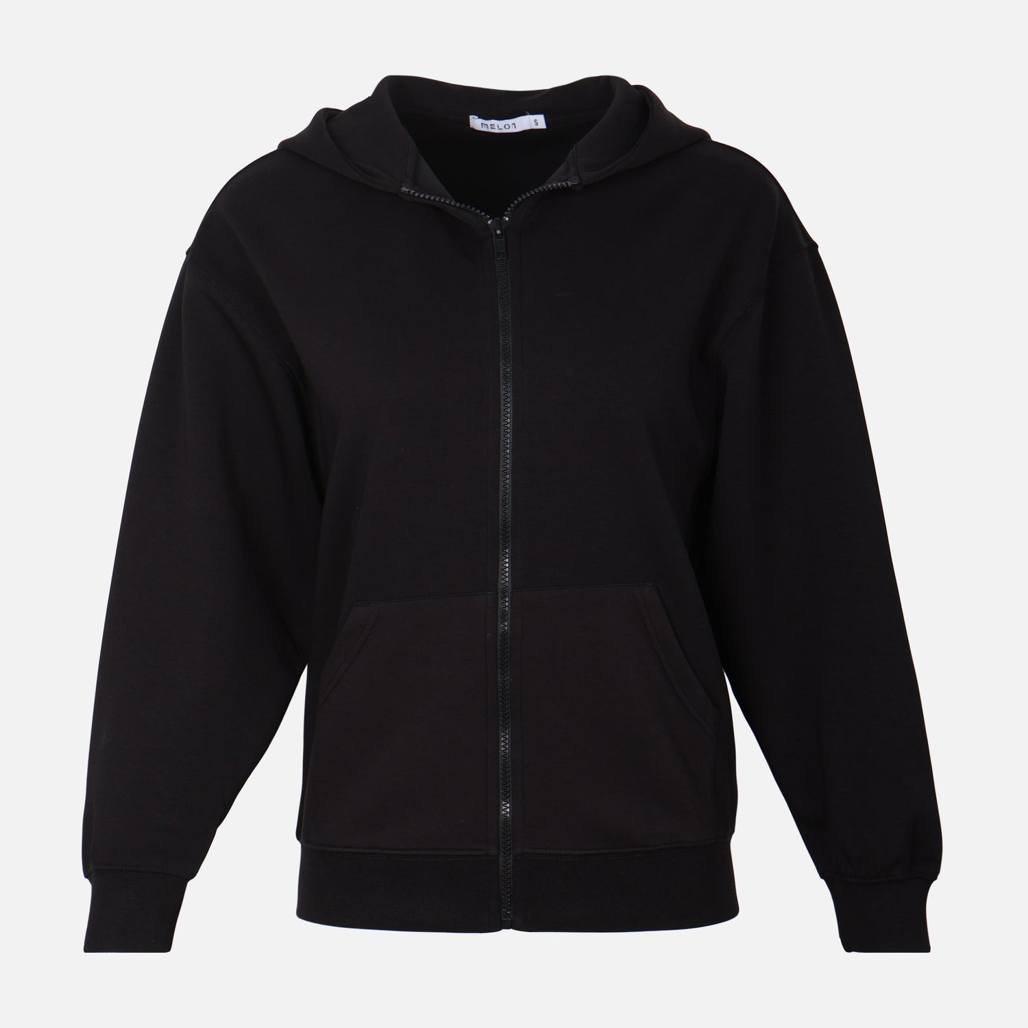WOMEN BASIC SCUBA FULLZIPPER HOODIE - BLACK / S