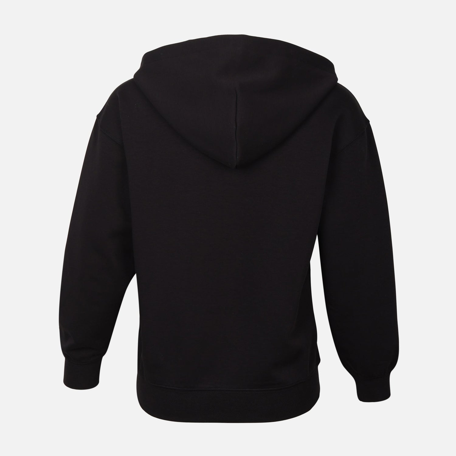Key Features & Design: This hoodie is built from a scuba-style knit that holds its shape while remaining soft to the touch. The clean, solid black design keeps styling simple and versatile; practical details like a full zipper, kangaroo pockets, and ribbed trims deliver function without bulk.