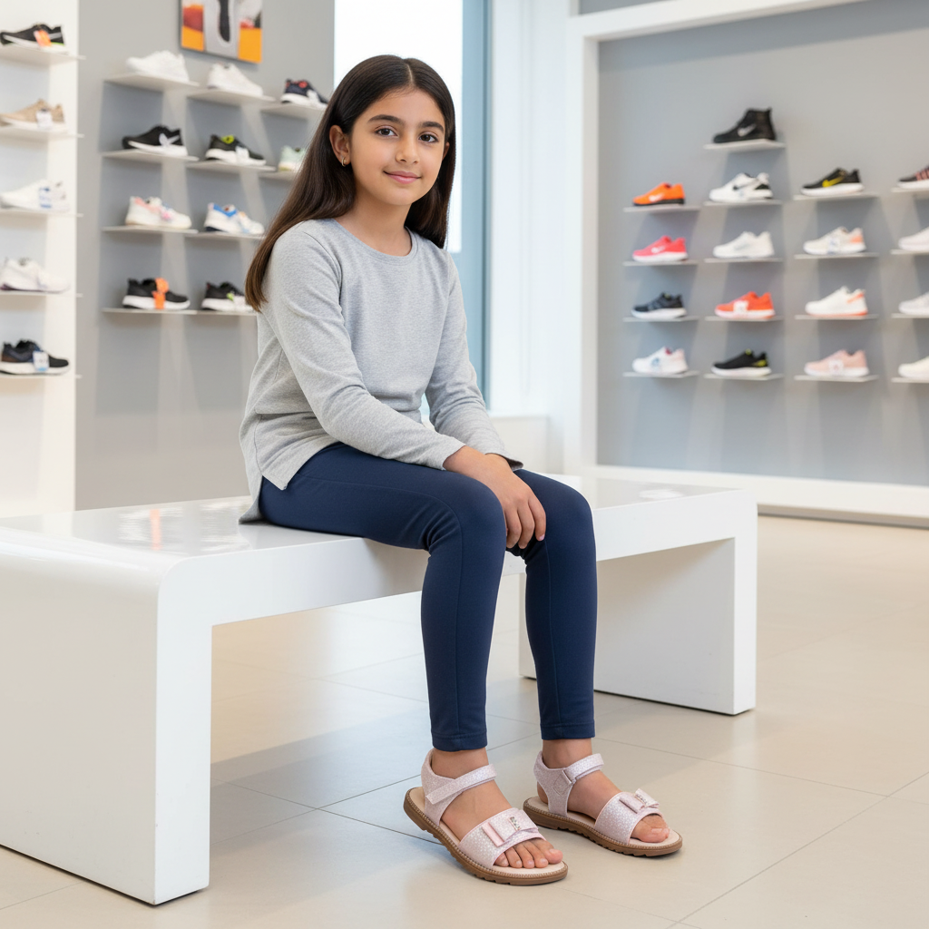Girls Casual Sandals are open-toe, glittery PU sandals designed for girls, delivering comfortable everyday wear with stylish sparkle for spring and summer.