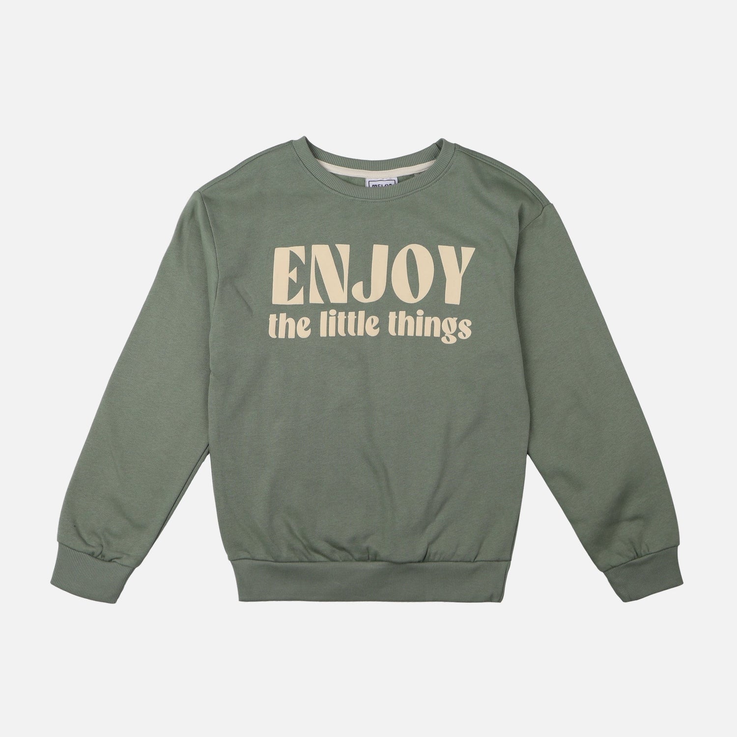 Pattern Front graphic print: “ENJOY the little things” in a creamy beige