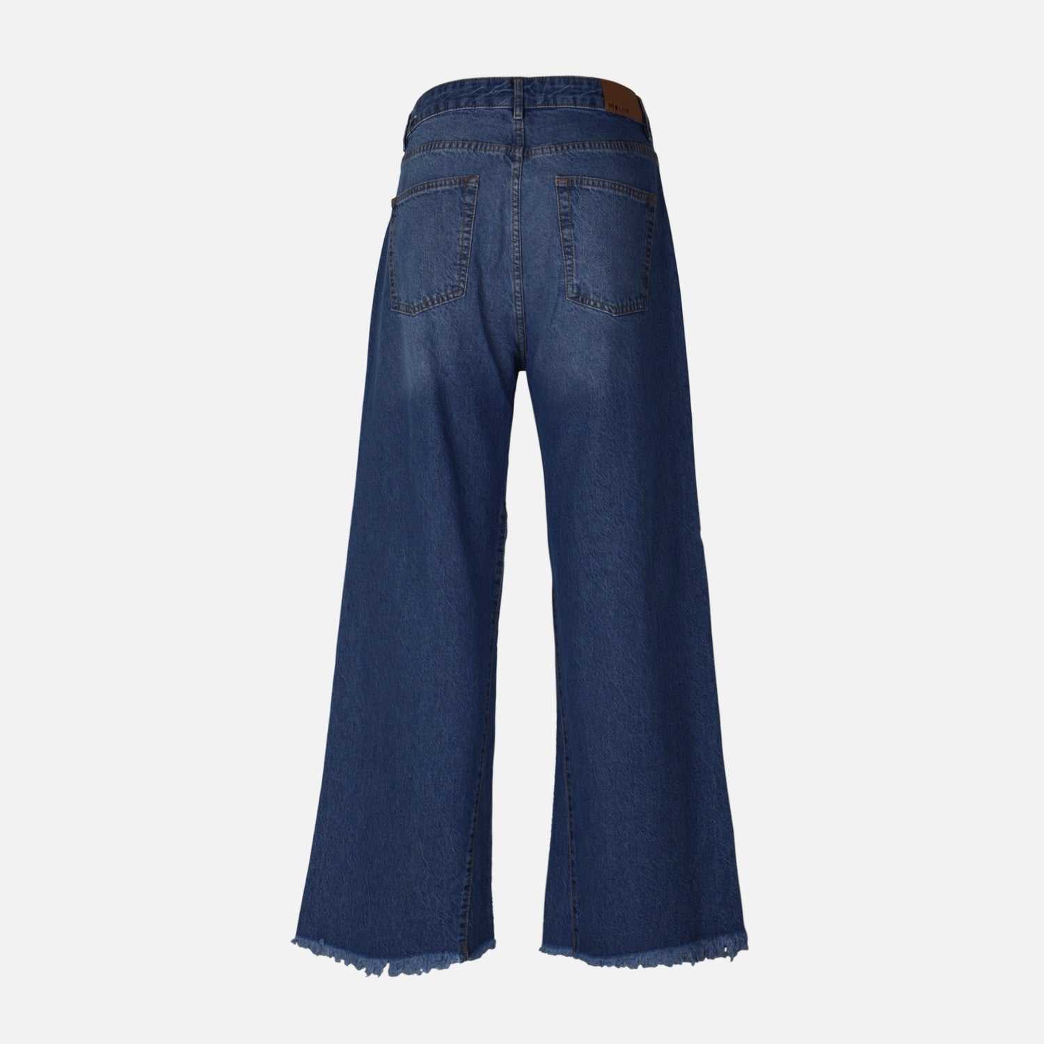 • Authentic blue denim wash with subtle fades and a clean-frayed hem for contemporary edge.