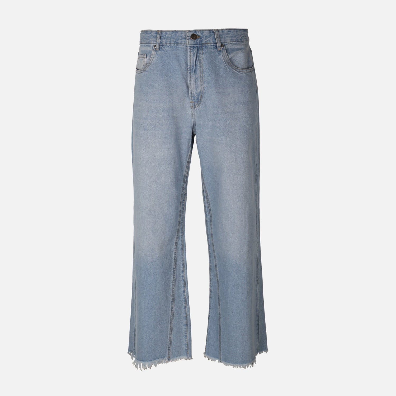 - Light blue cotton denim with subtle fading for versatile styling from casual to polished outfits.