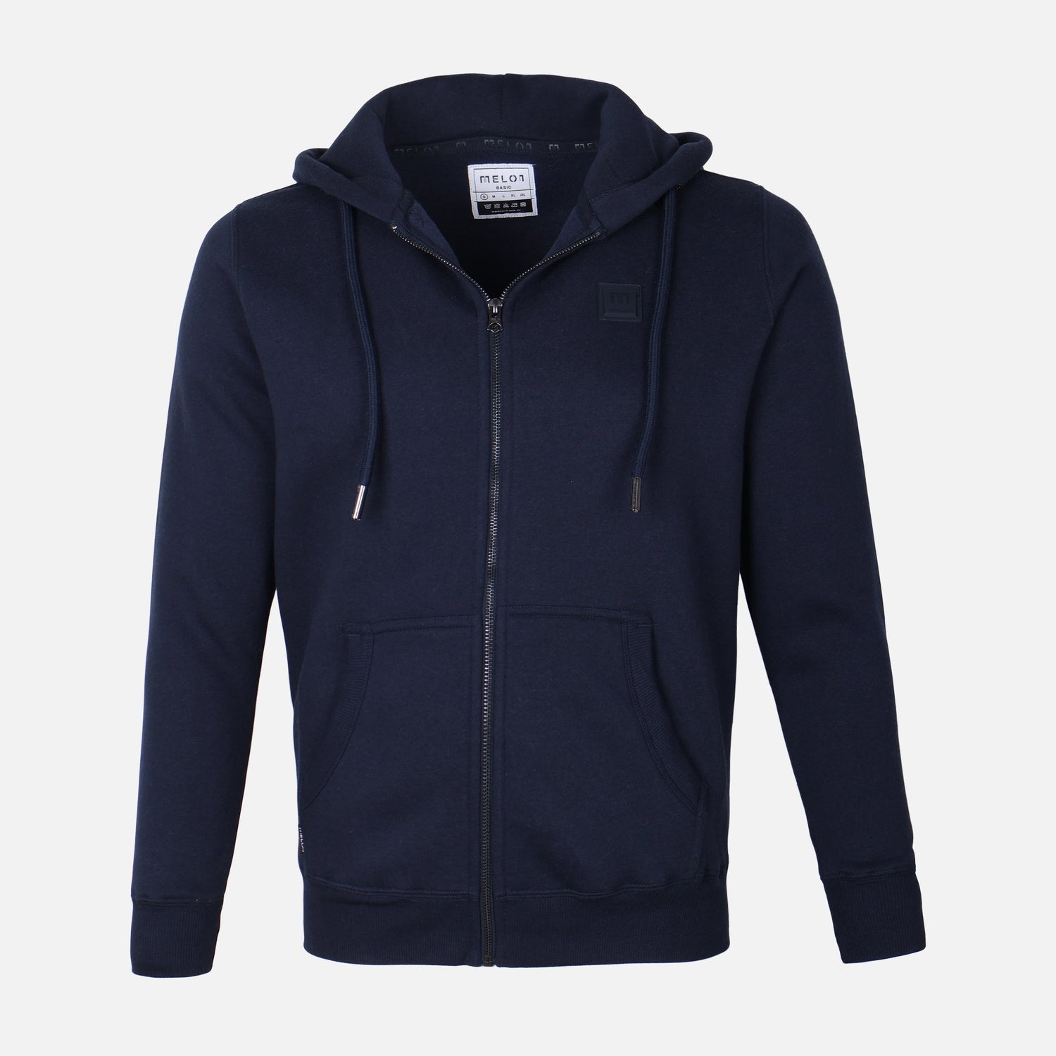 Men Solid Fleece Cardigan With Hood - NAVY / S