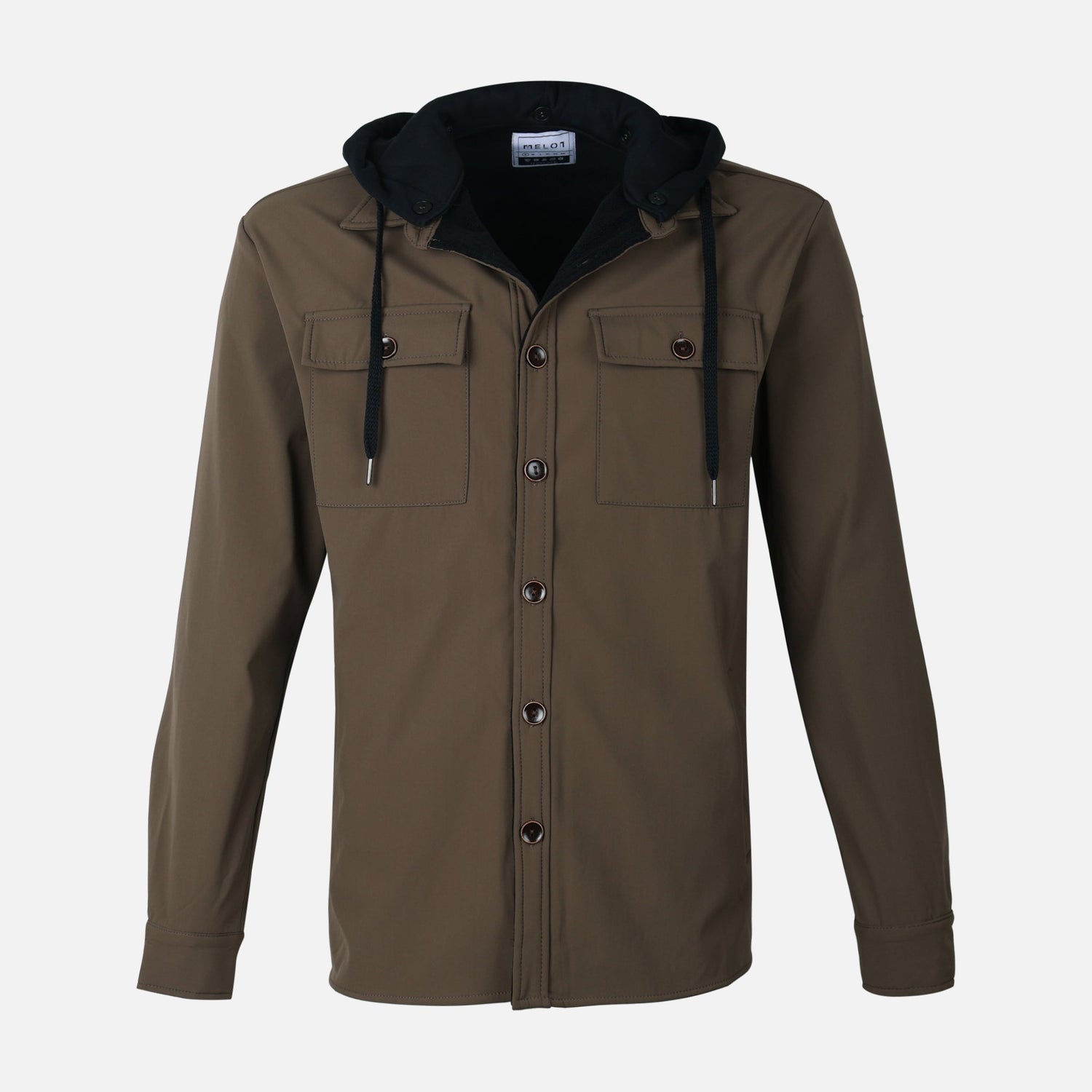 MEN HOODED LONG SLEEVE SHIRT WITH COLLAR