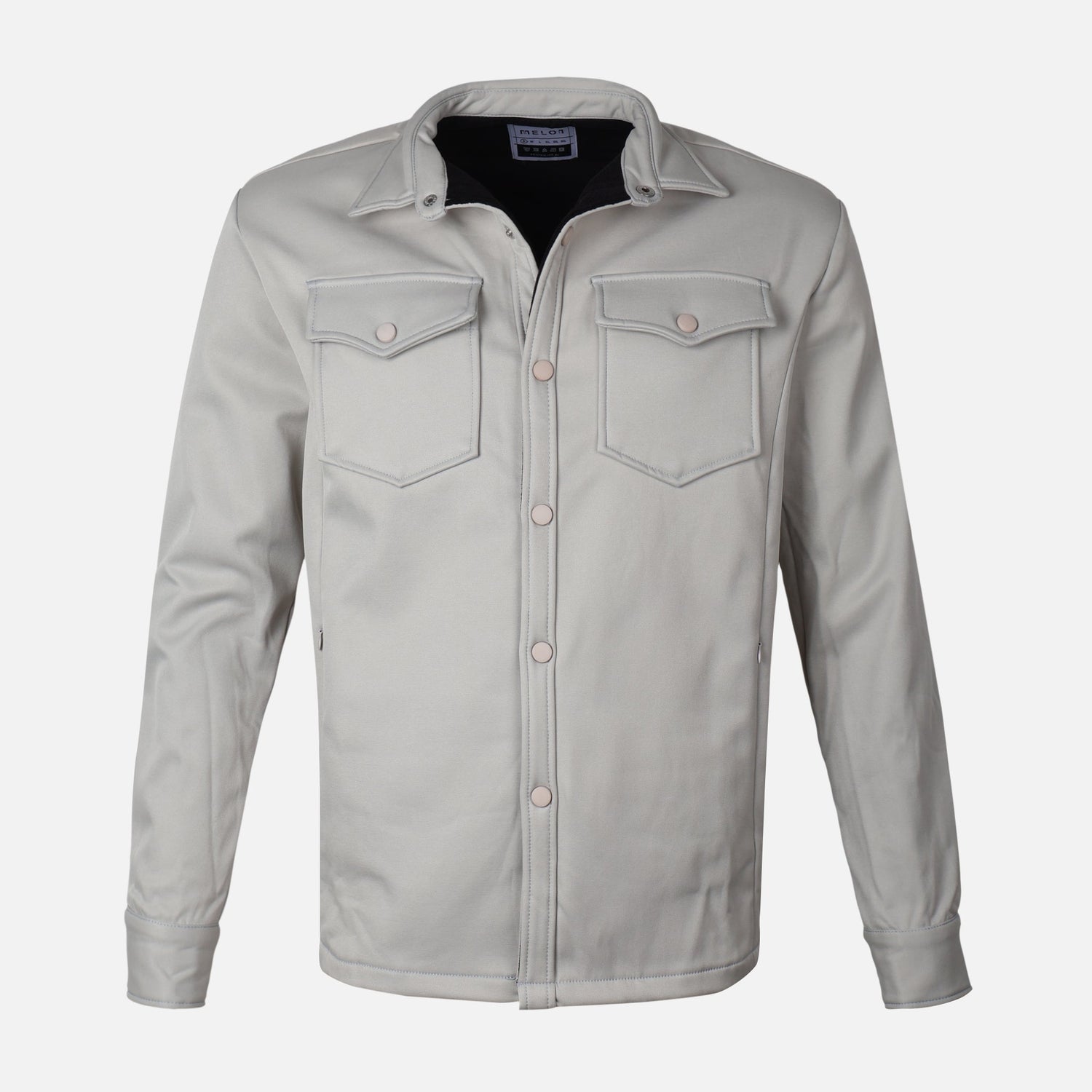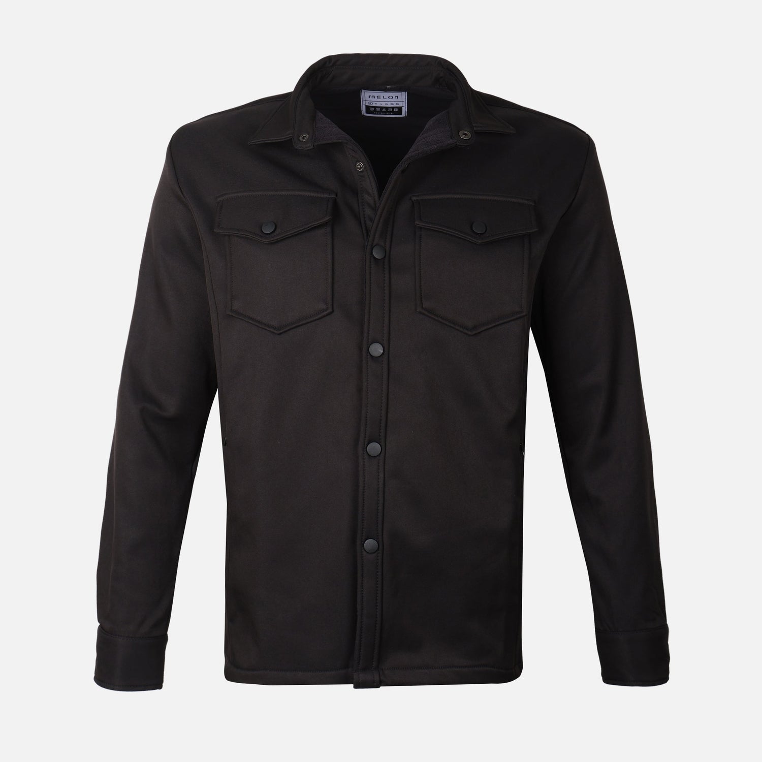 • Classic spread collar with front button closure and functional chest pockets for utility and style.