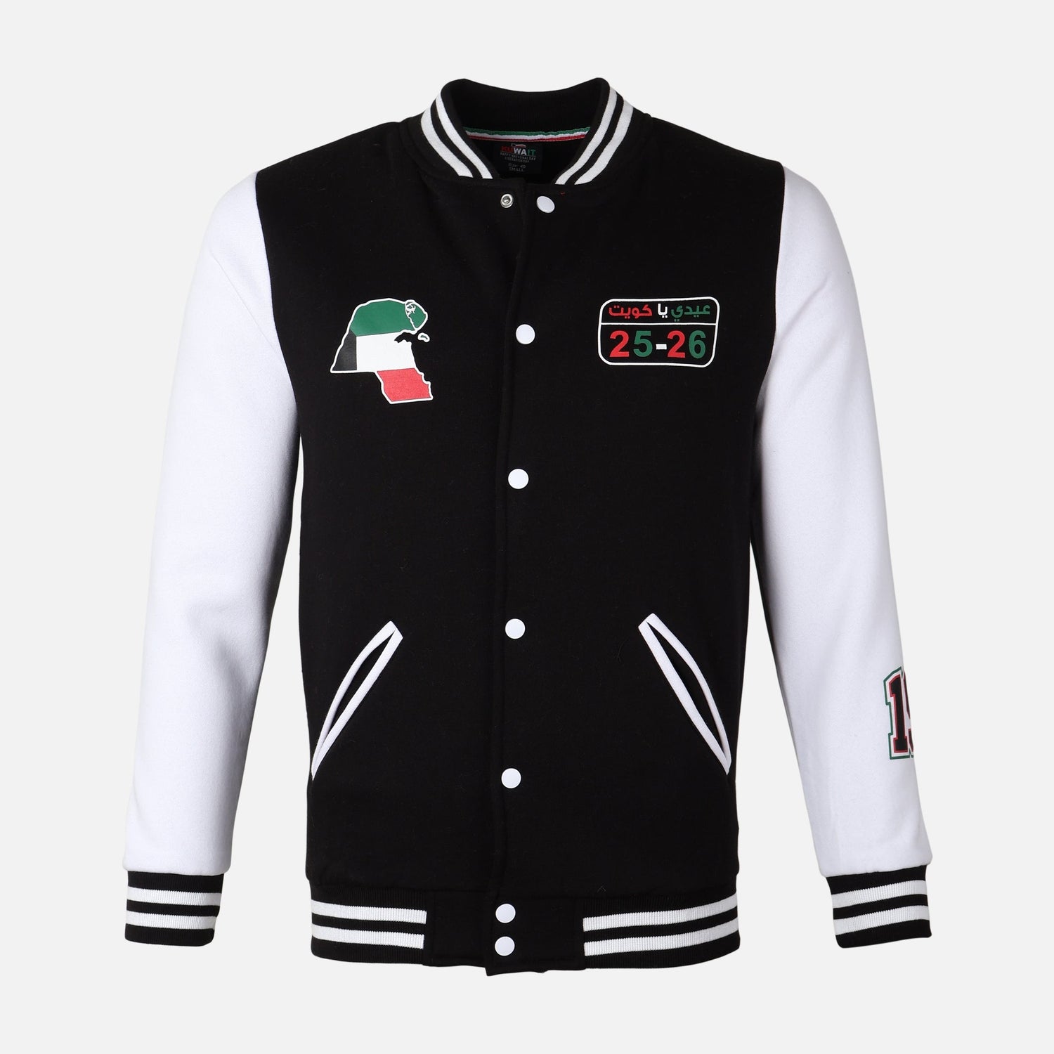 - Bold chest patches feature embedded graphics—one with a color-blocked patch and another with Arabic text and numbers—adding distinctive, urban character.
