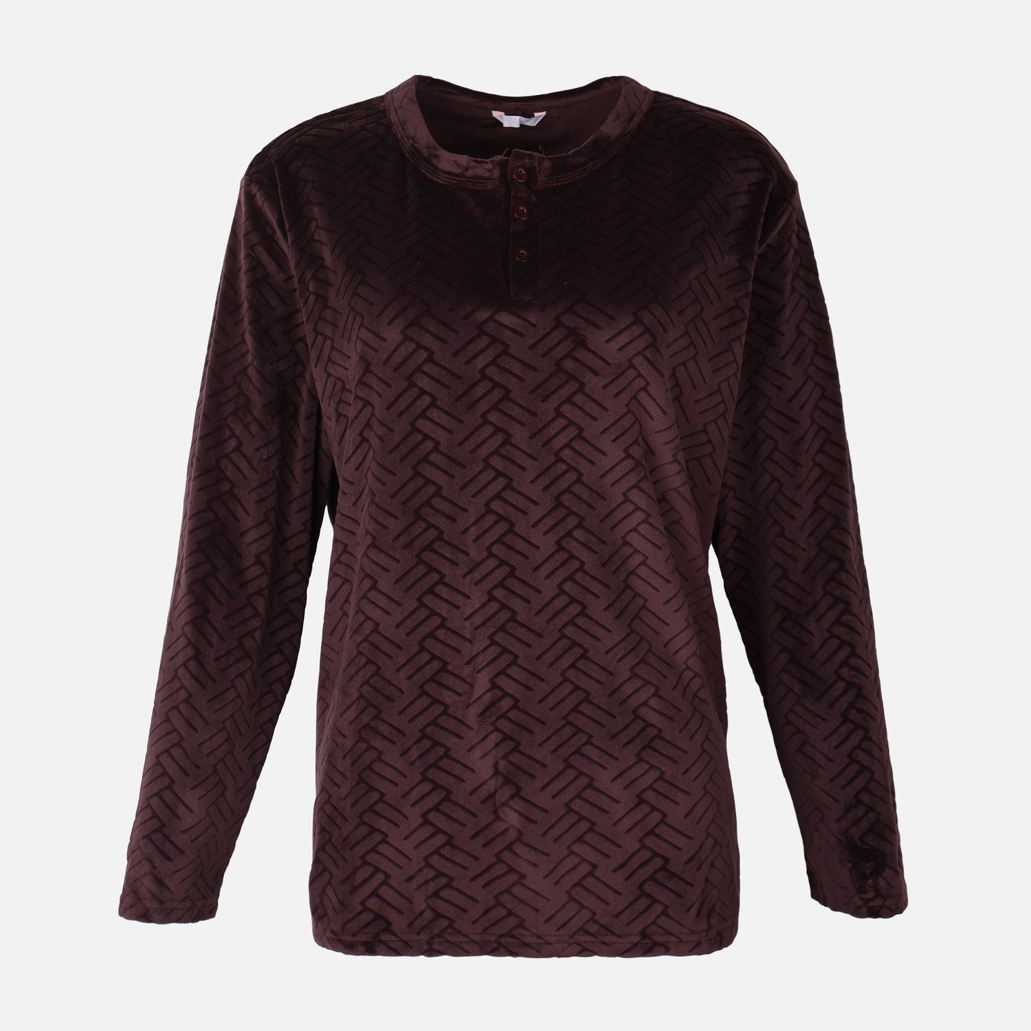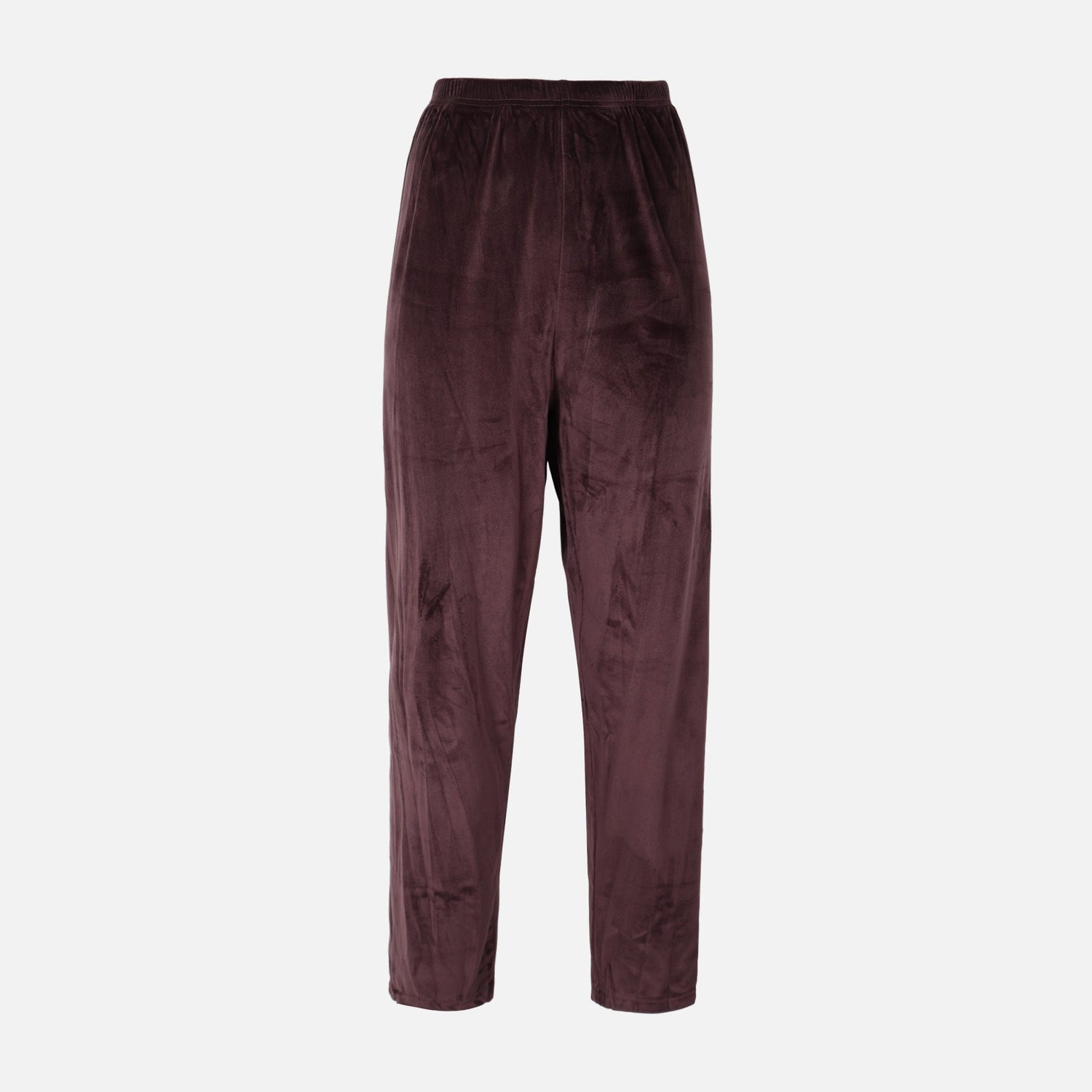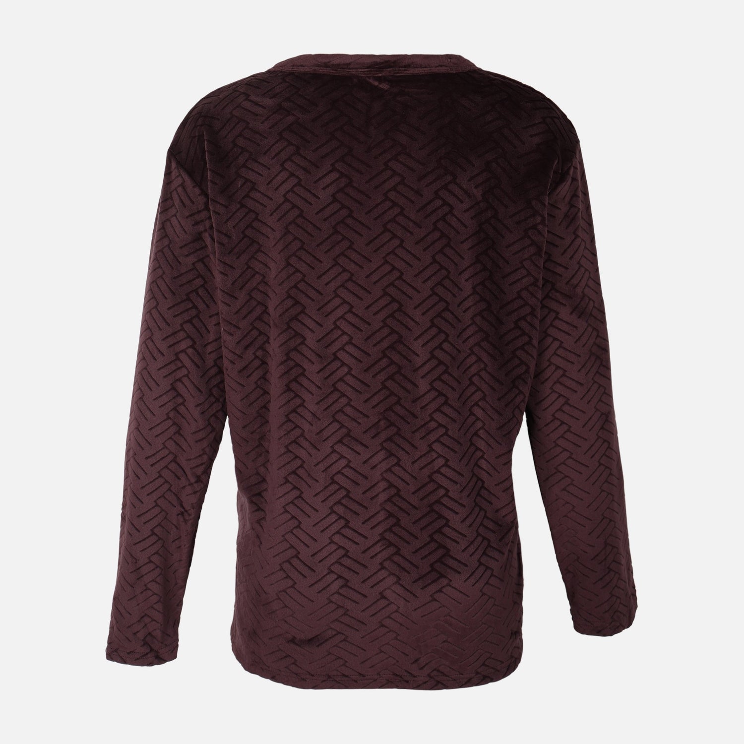 Introduction – This ladies pajama 2-piece set offers cozy, stylish sleepwear for women, combining a textured, velvet-look top with matching burgundy pants in a soft, 100% polyester fabric.