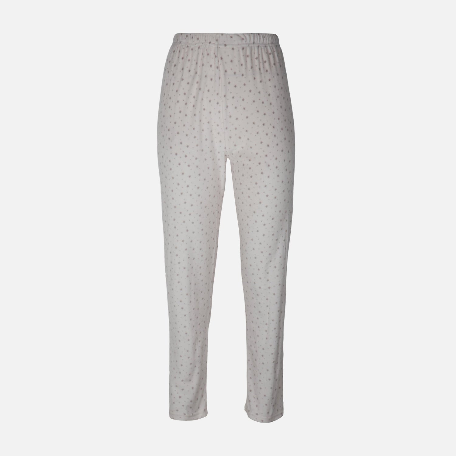 Designed for women who value cozy, easy-care sleepwear, this Ladies Pajama 2 Pieces Set pairs a comfortable, button-down top with full-length pants in a soft star-print fabric—perfect for relaxing nights and lazy mornings at home.