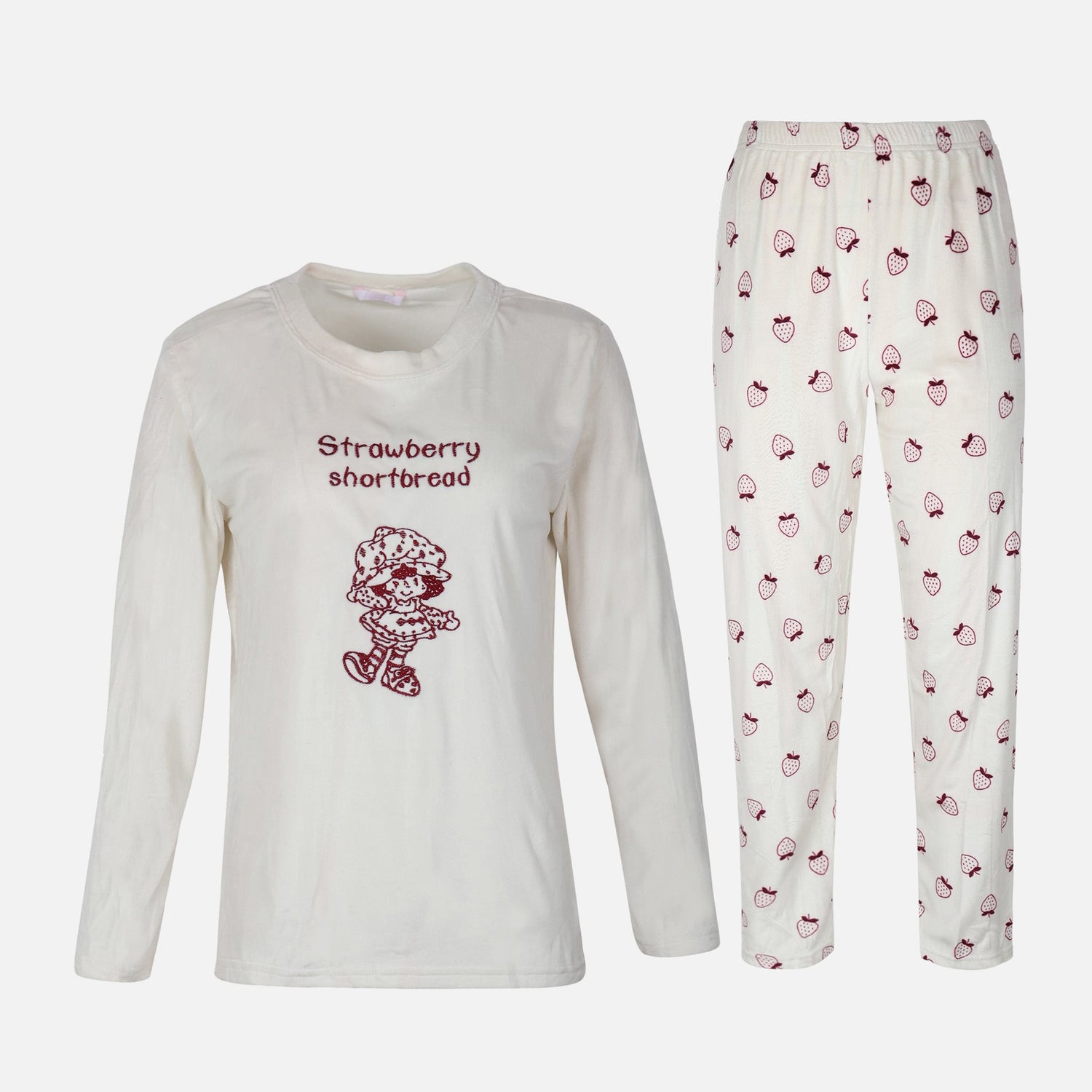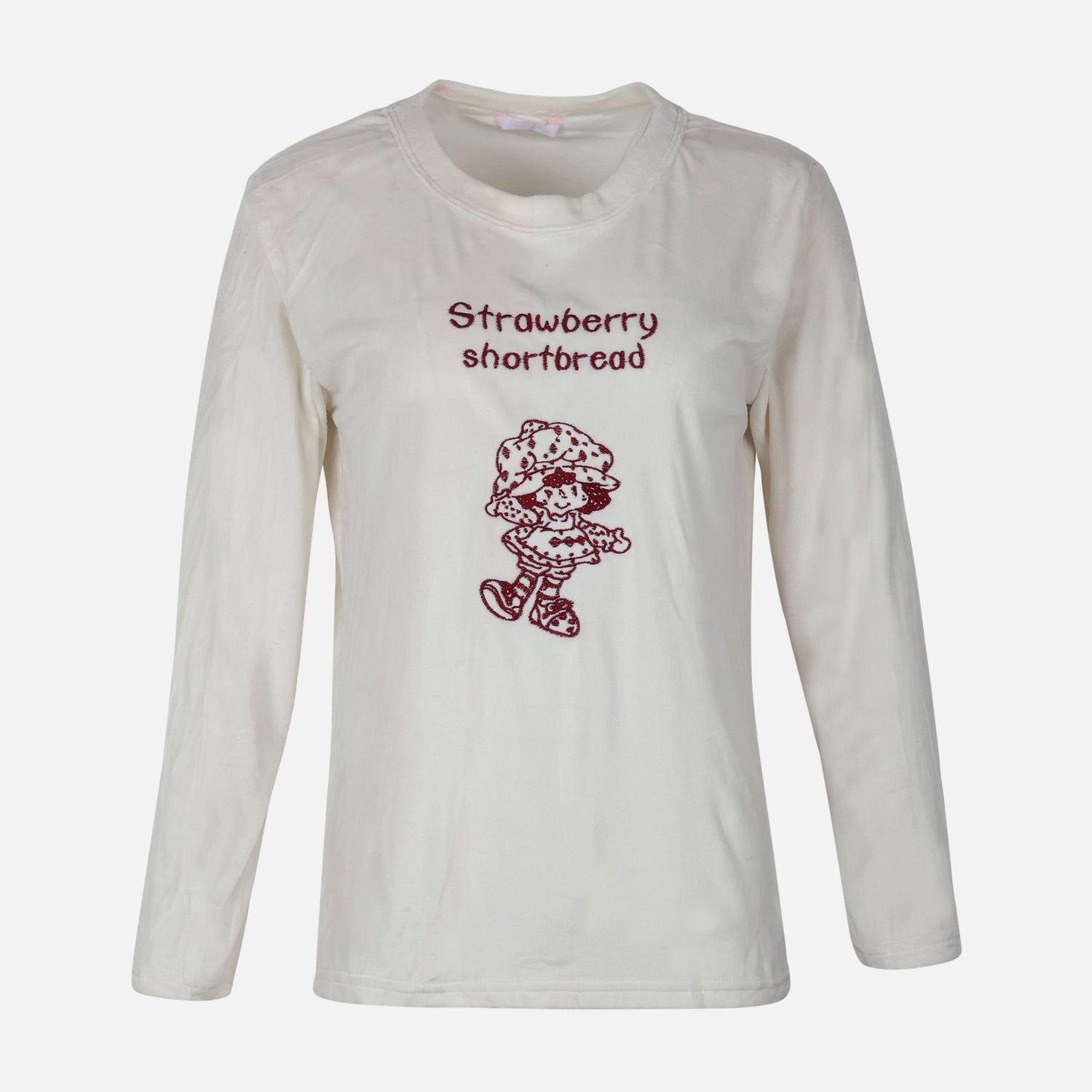 - Long-sleeve top features a charming strawberry shortbread graphic, adding a playful focal point to the look.