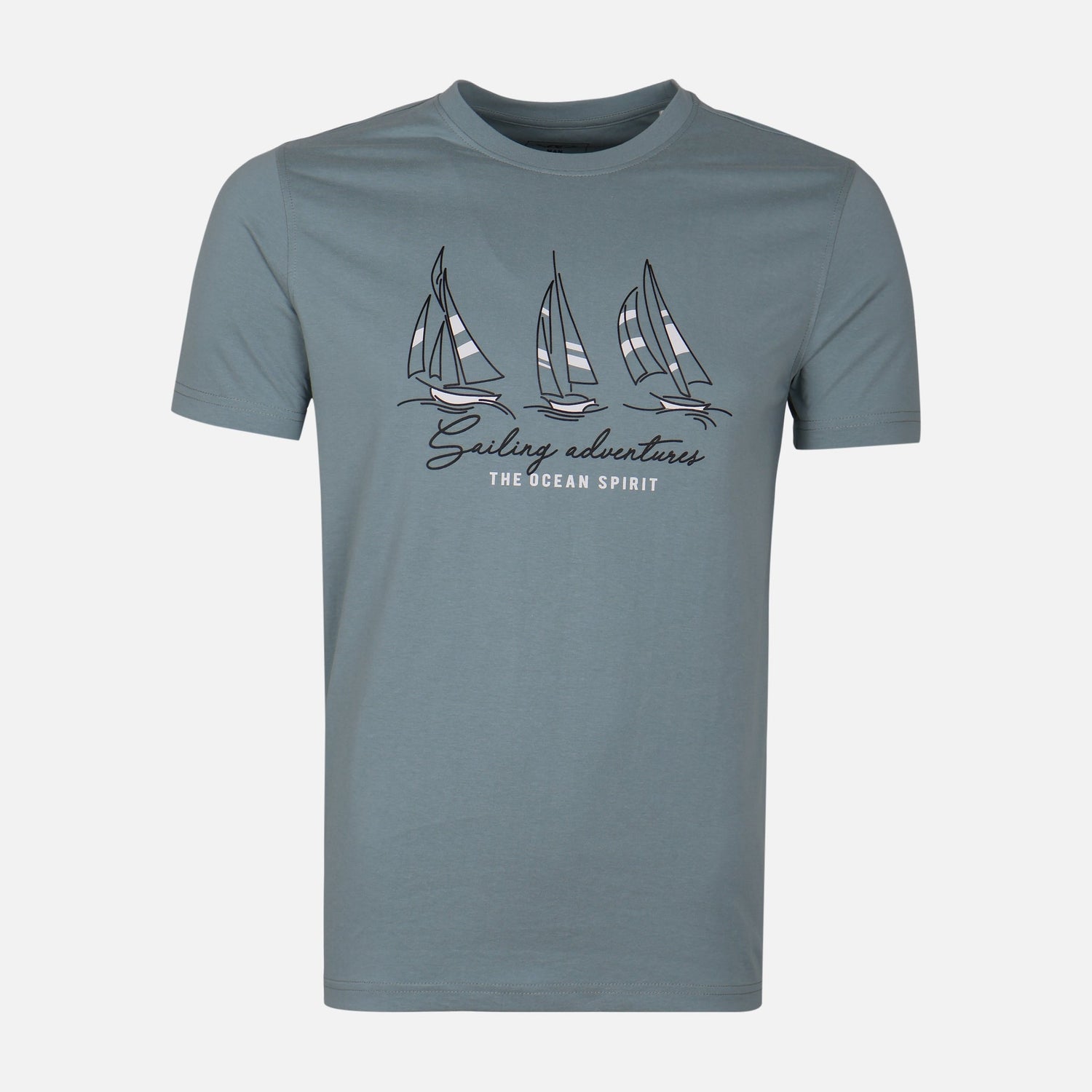 MEN T-SHIRT ROUND NECK - LIGHT BLUE / 4XL