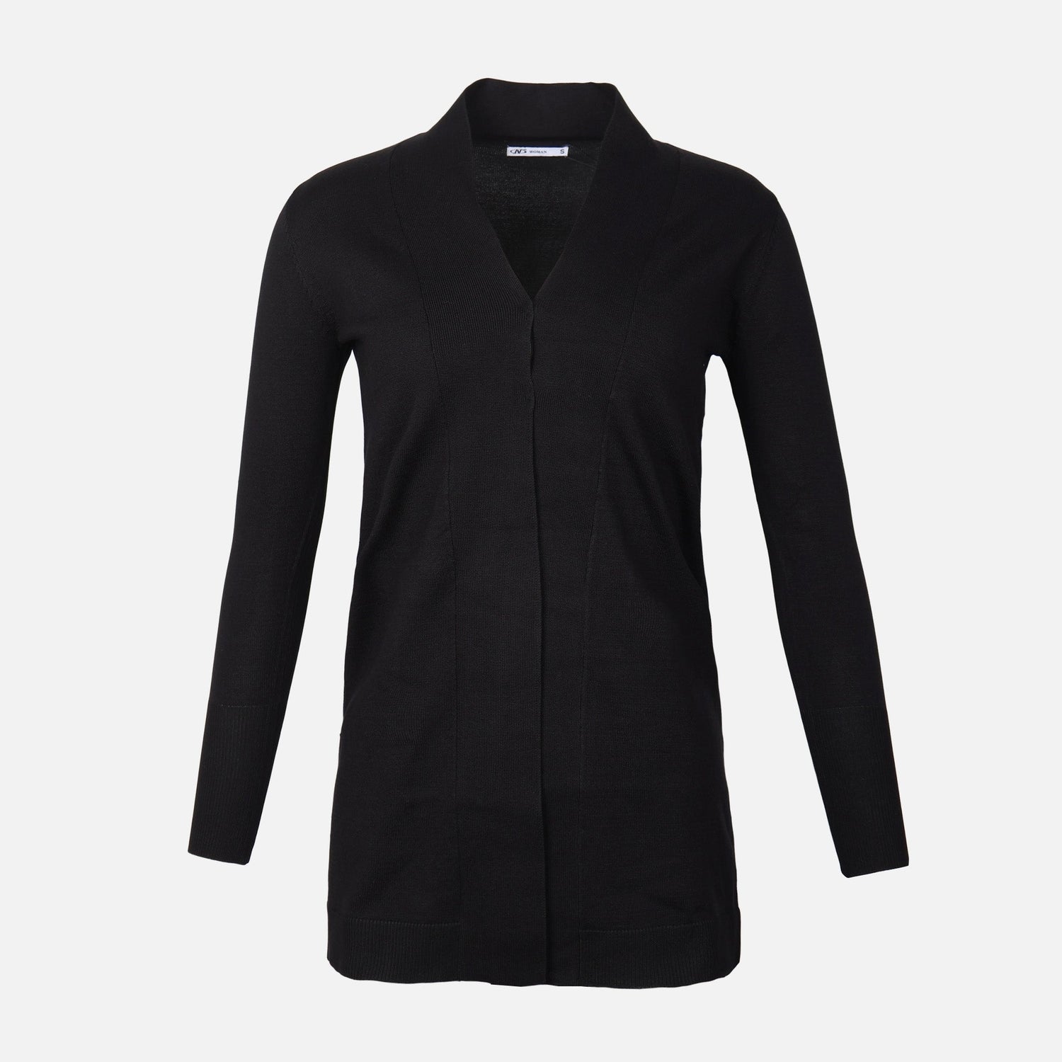 Key Features & Design: The cardigan features a simple open-front V-neck, long sleeves and a straight longline hem. Subtle ribbing at the cuffs and hem gives a neat finish while the plain knit keeps the look versatile and easy to pair.