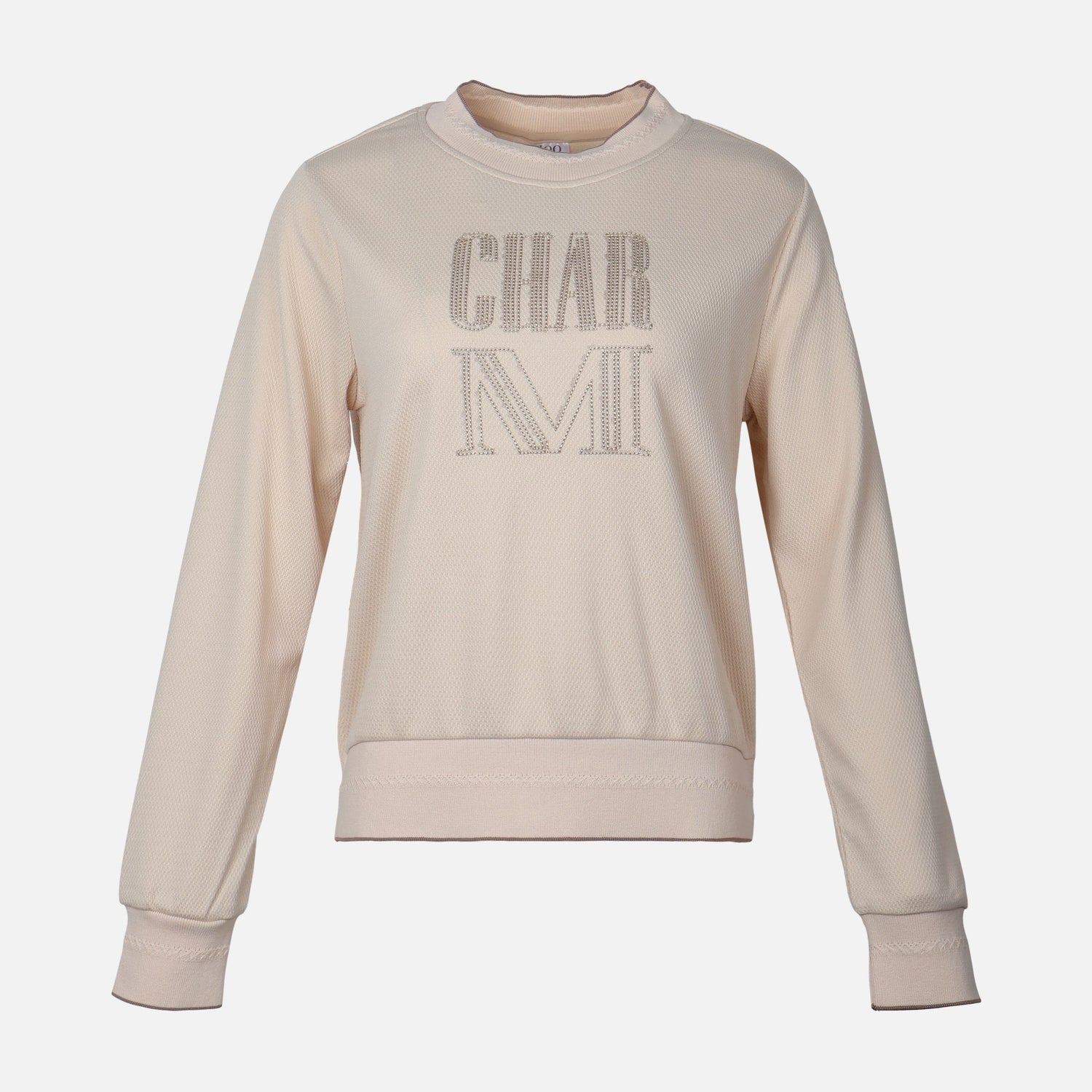 A soft, everyday women's sweatshirt designed for relaxed comfort and understated style — perfect for casual outings, travel, or lounging at home. Subtle textured knit and a tonal stitched logo give it a refined, lived-in look.