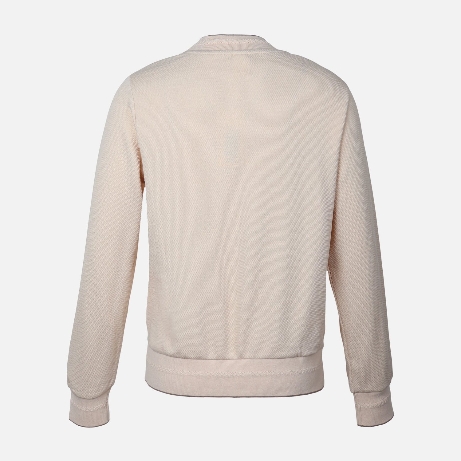 Key Features & Design: This sweatshirt combines a breathable cotton-rich blend with polyester durability, a clean crew neck, and ribbed finishes. The textured surface and stitched chest motif give it a polished casual aesthetic without extra bulk.