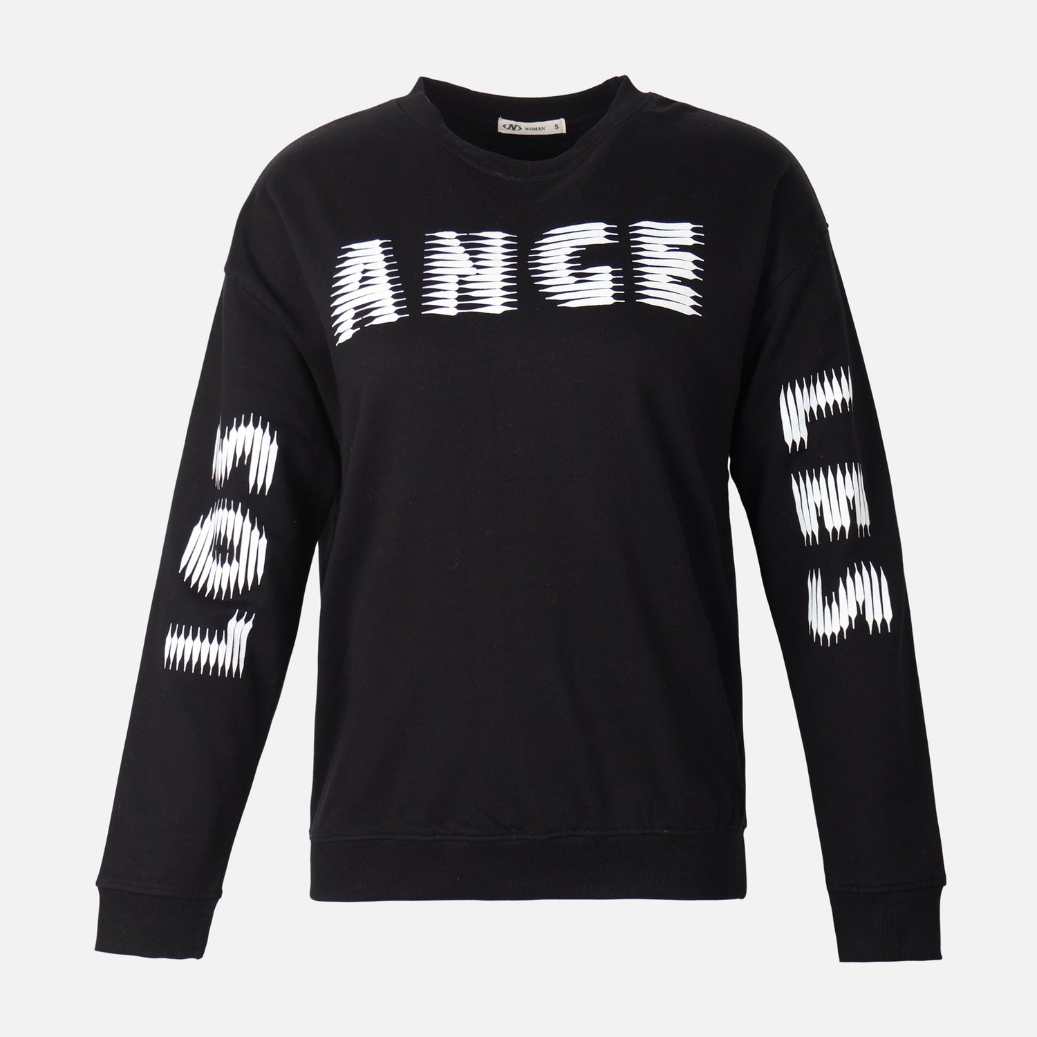 Introduction – A women’s lifestyle sweatshirt designed for everyday comfort and street-ready style, featuring bold white graphic detailing on a black cotton base. Ideal for casual outings, relaxed weekends, or layering on cooler days.