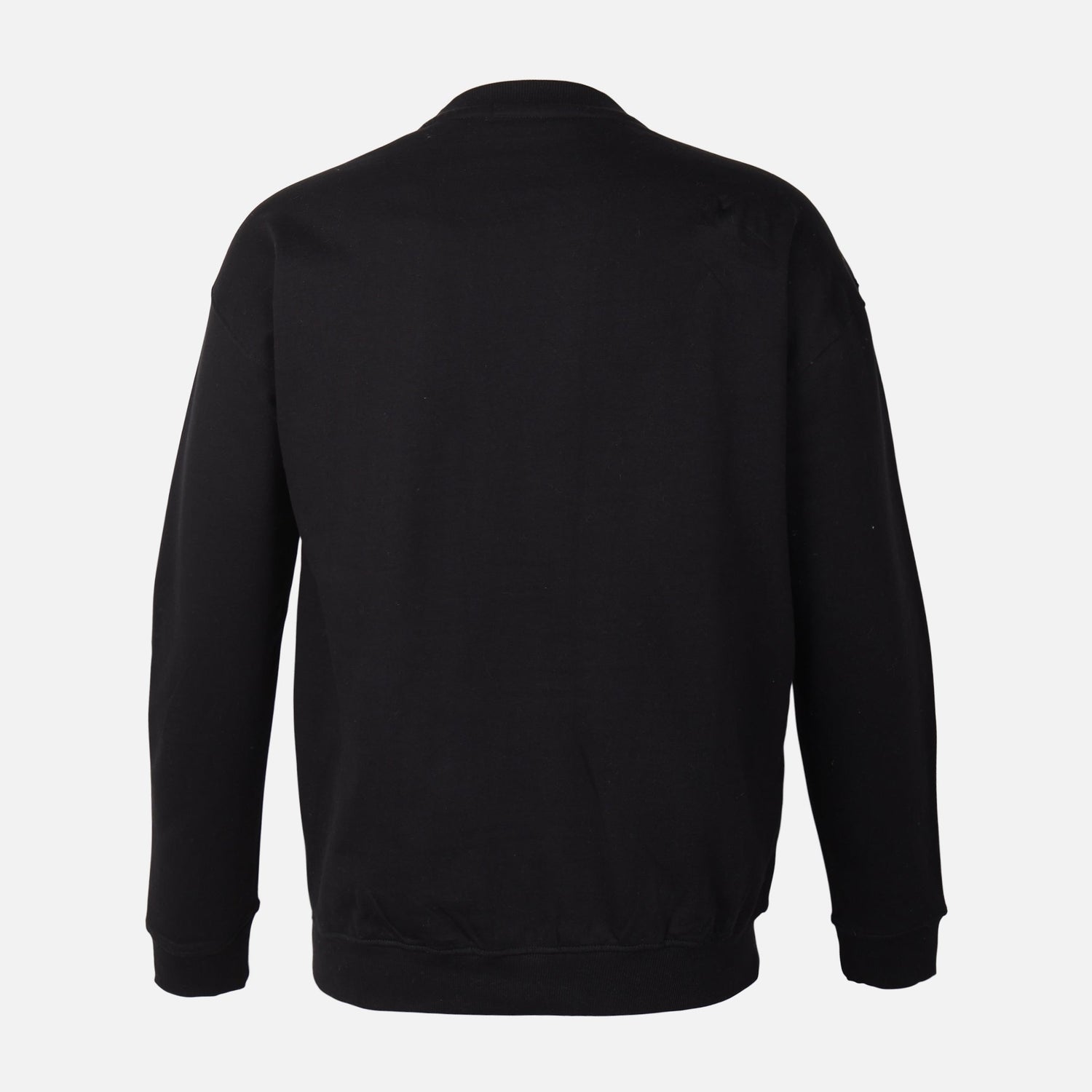 Key Features & Design: This sweatshirt pairs a clean black cotton base with striking white, distorted-style graphics across the chest and down the sleeves, creating a contemporary urban aesthetic. Ribbed trims at the neck, cuffs, and hem provide structure while maintaining a relaxed fit. The pullover construction and soft interior make it a comfortable everyday top.