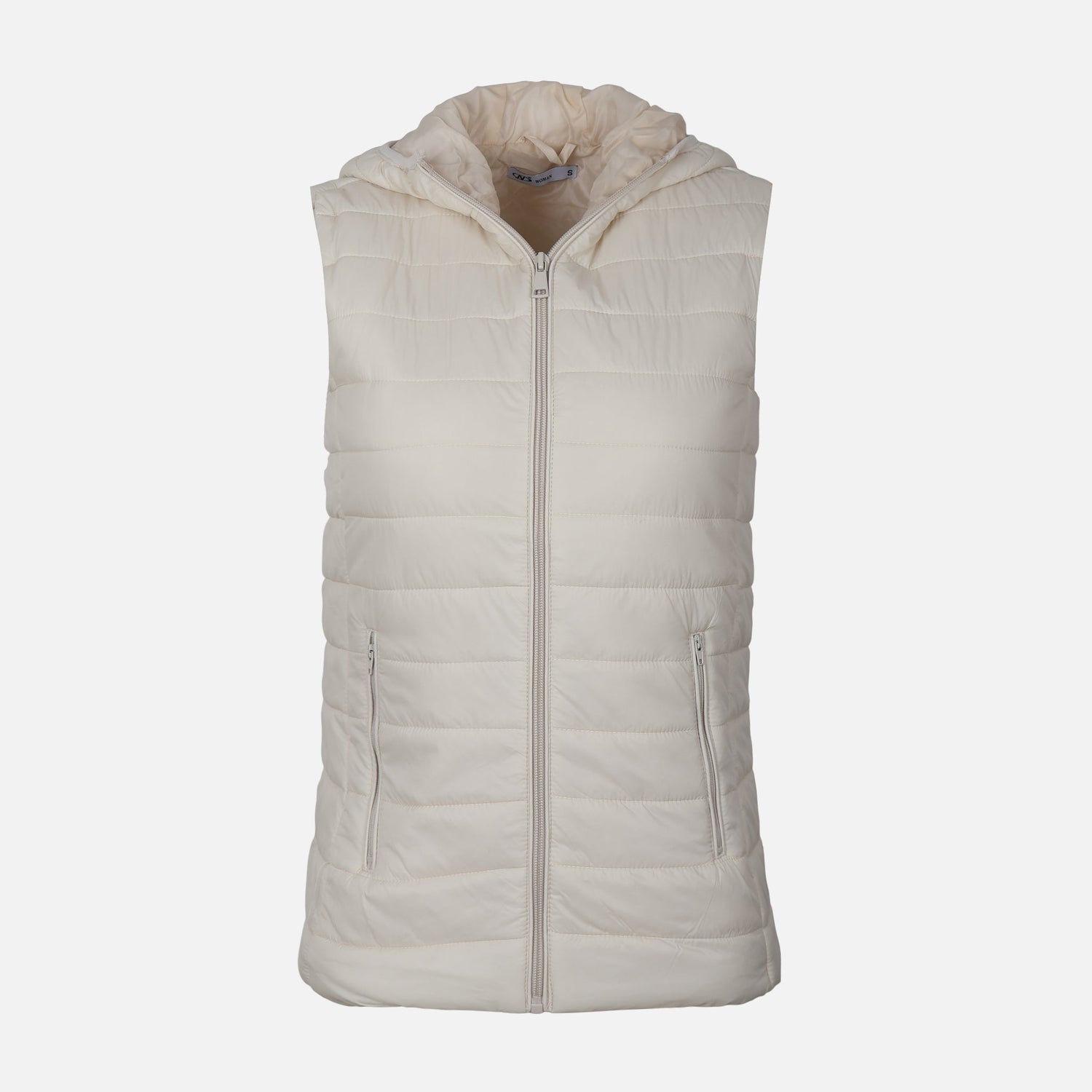 WOMEN BASIC PADDED VEST WITH HOOD - LIGHT BEIGE / S