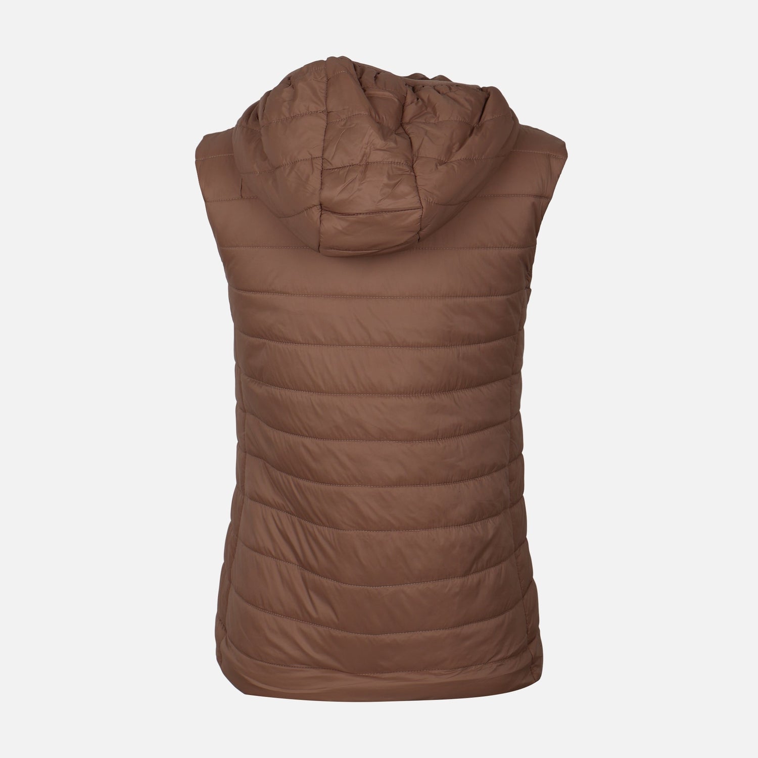 WOMEN BASIC PADDED VEST WITH HOOD - BROWN / S